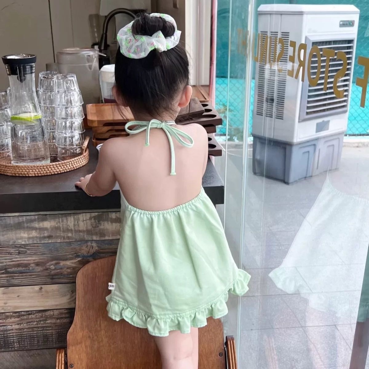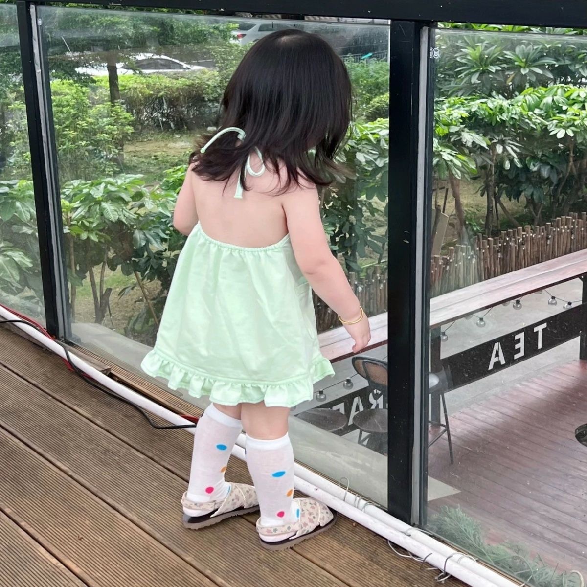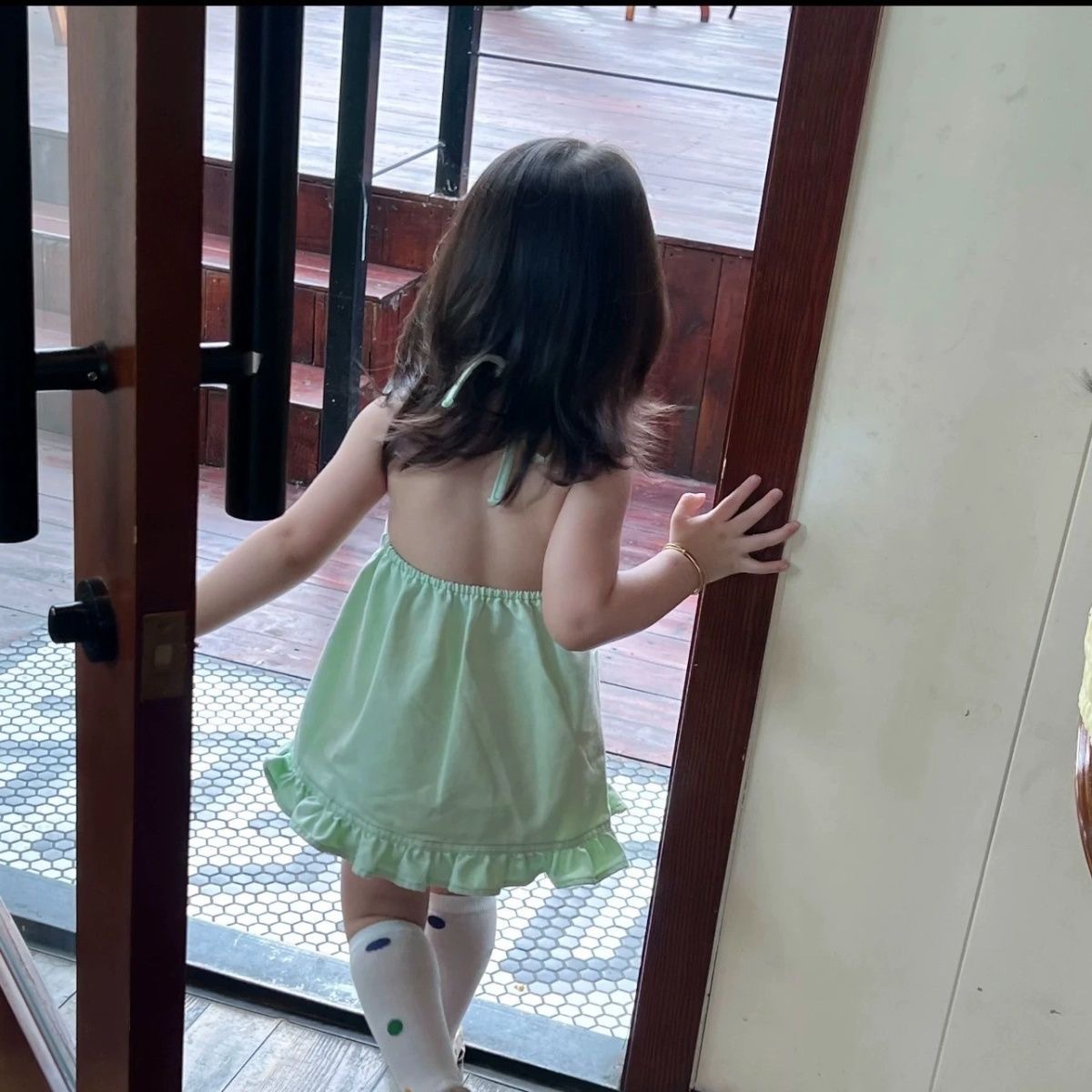 여자 여름 드레스 2025 새로운 스타일 베이비 쿨 홀터넥 백리스 레이스 서스펜더 스커트 조끼 스커트스토어 가기
