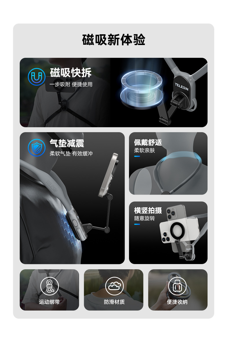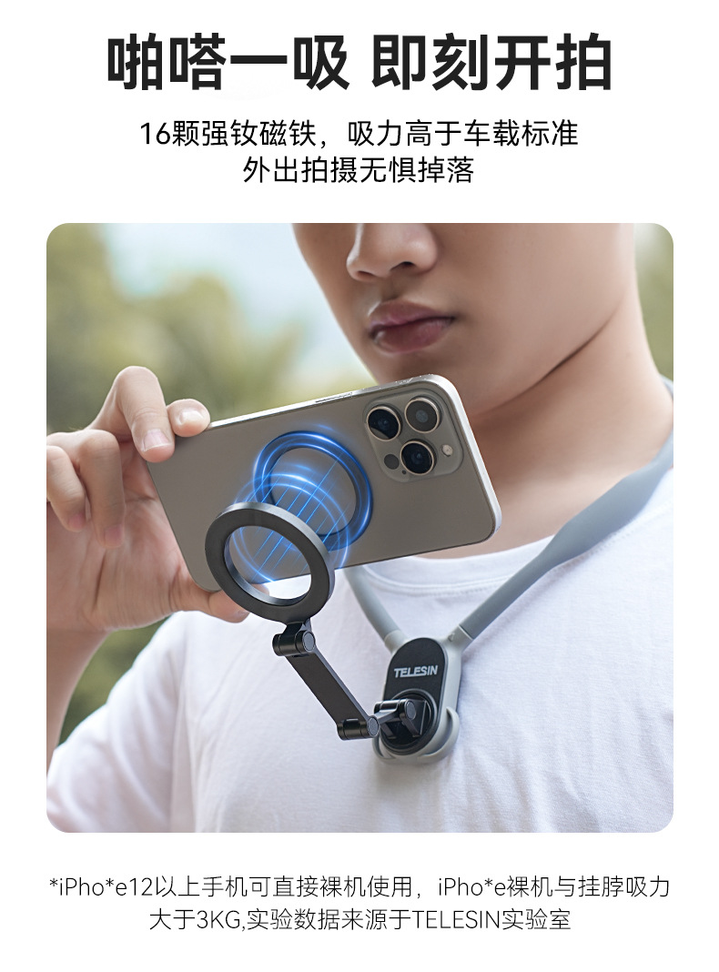 TELESIN Taixun 자기 휴대폰 걸이형 목 브래킷은 Apple 걸이형 목 브래킷에 적합하며 빠른 분리형 1인칭 촬영에 적합합니다.스토어 가기