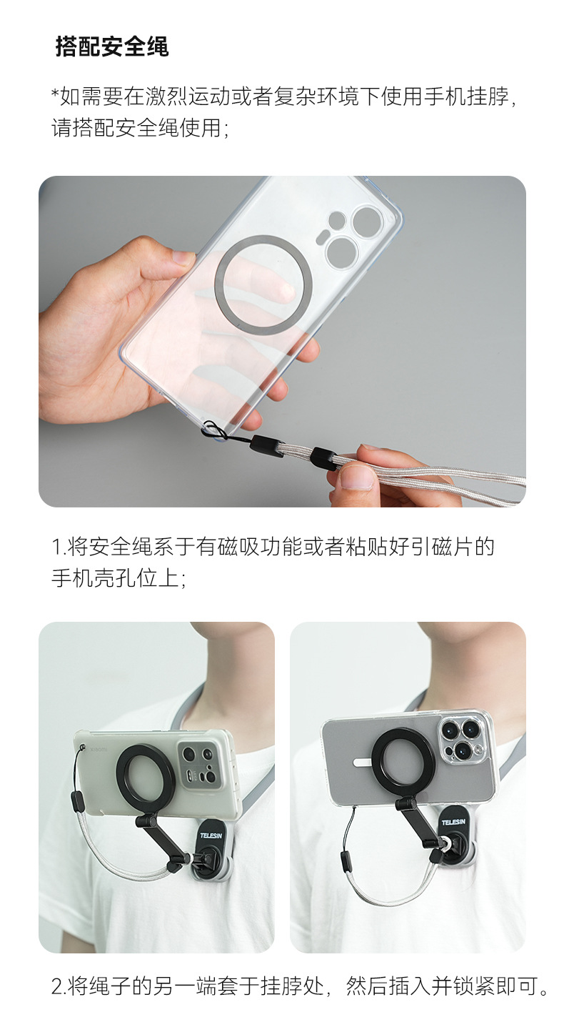 TELESIN Taixun 자기 휴대폰 걸이형 목 브래킷은 Apple 걸이형 목 브래킷에 적합하며 빠른 분리형 1인칭 촬영에 적합합니다.