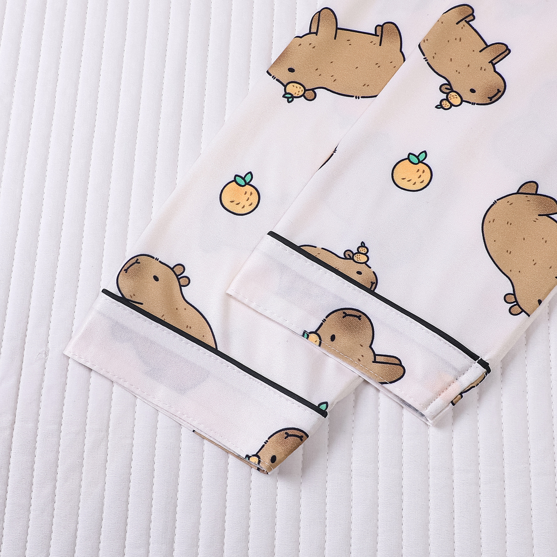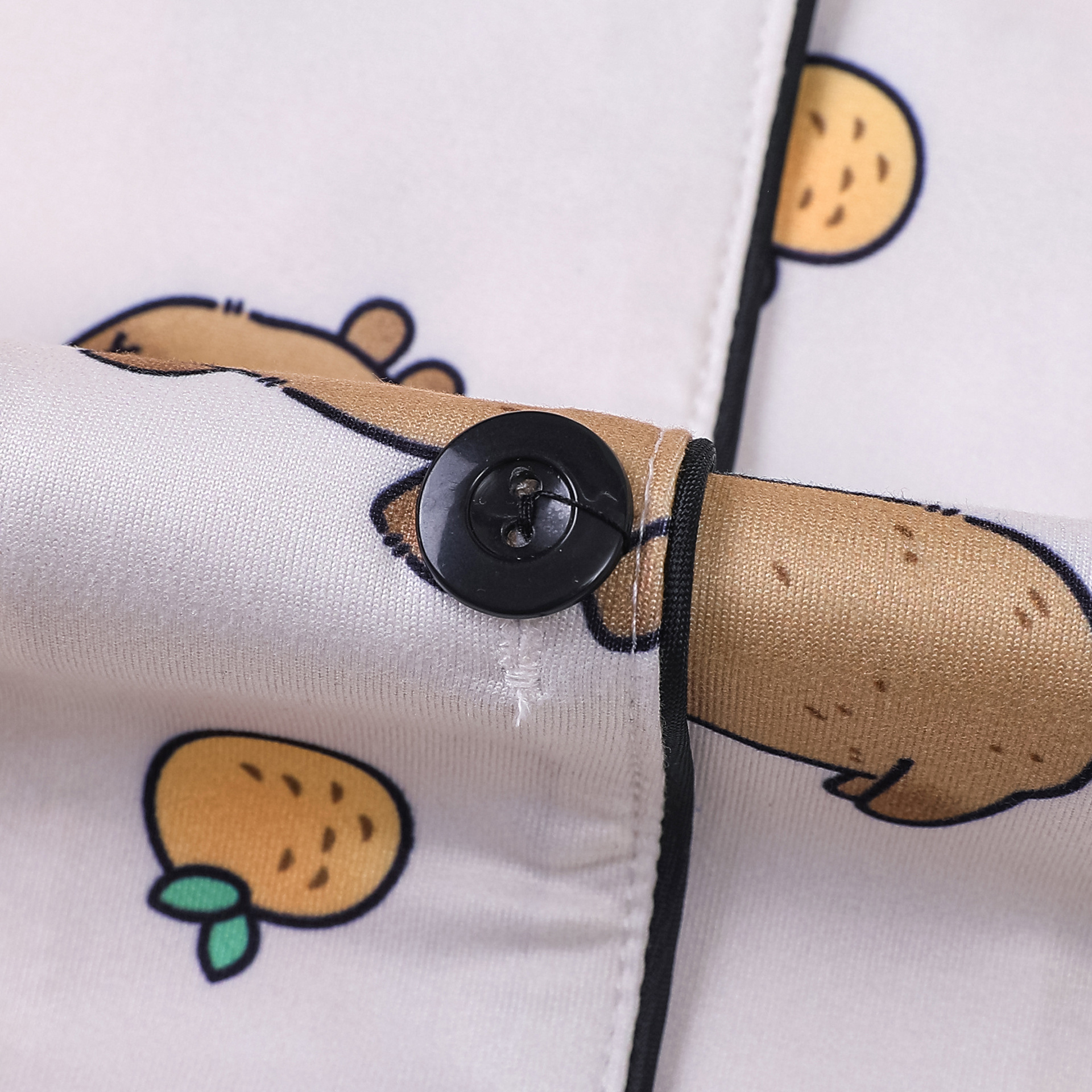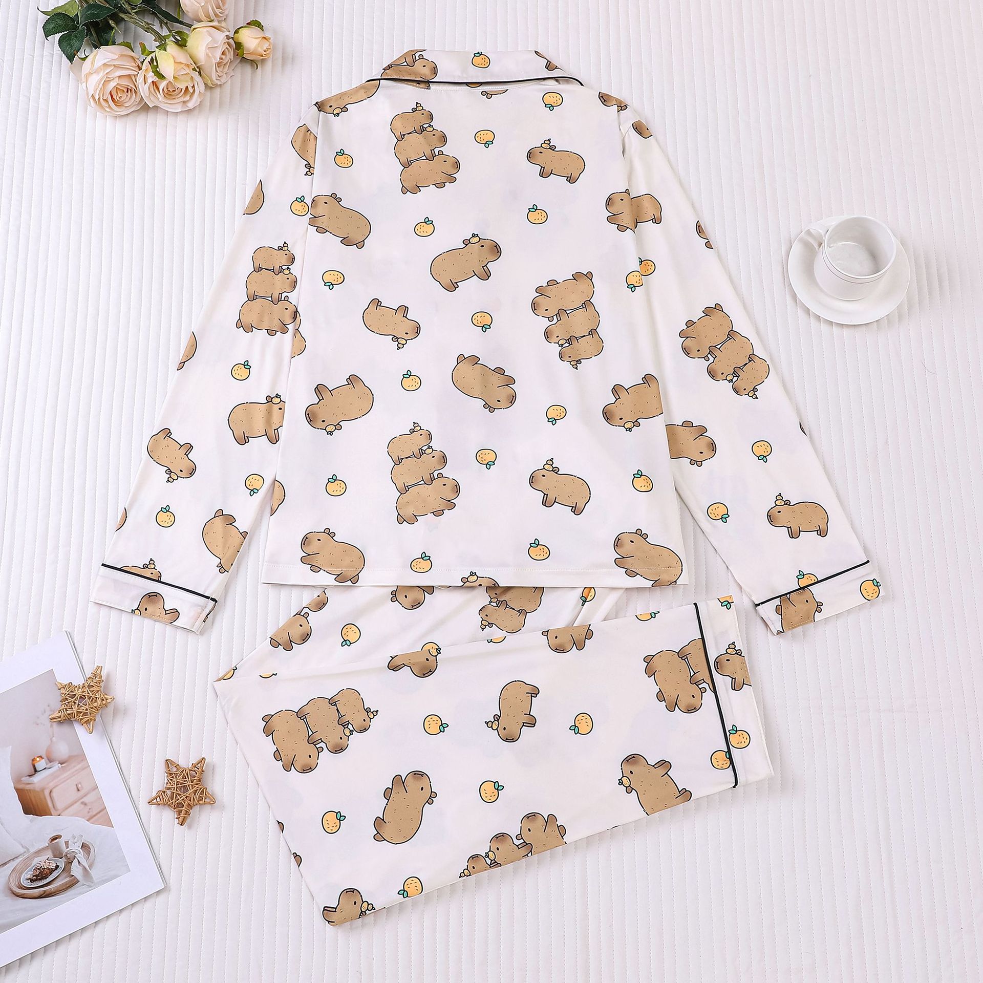 국경 간 대외 무역 인기 여성 잠옷 사계절 프린트 라펠 긴팔 바지 유럽과 미국의 편안한 홈웨어 세트