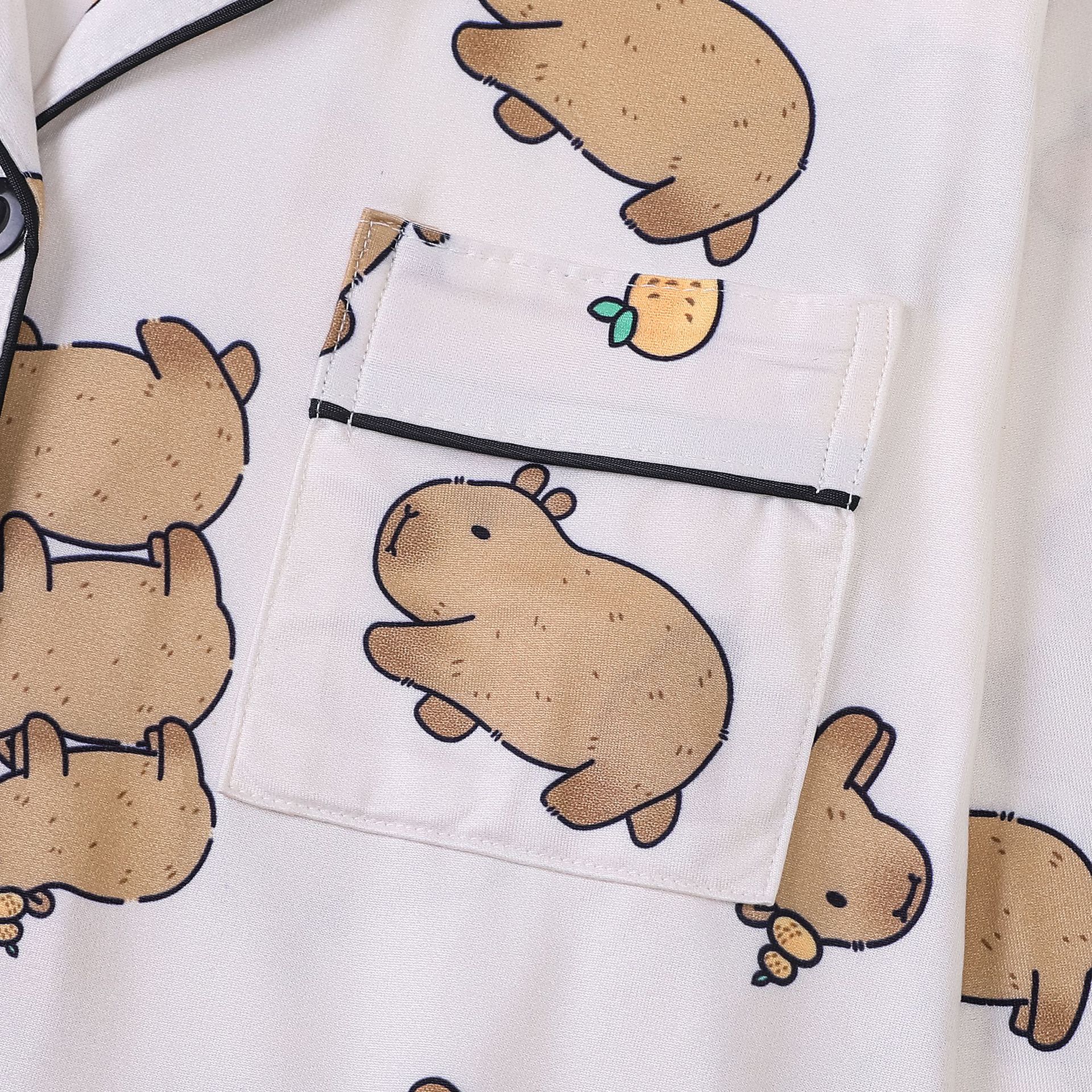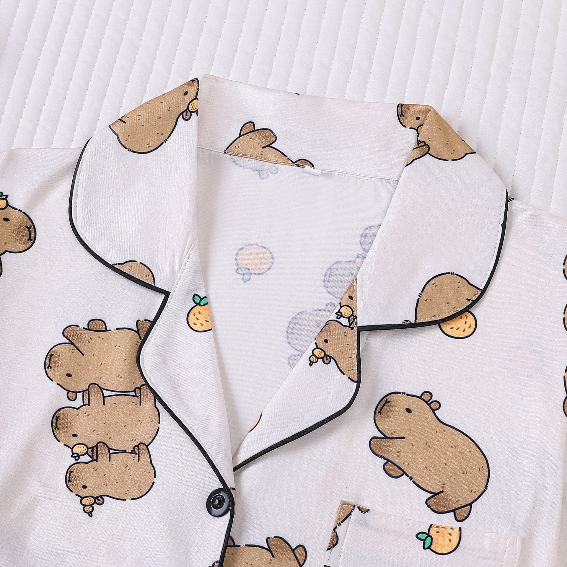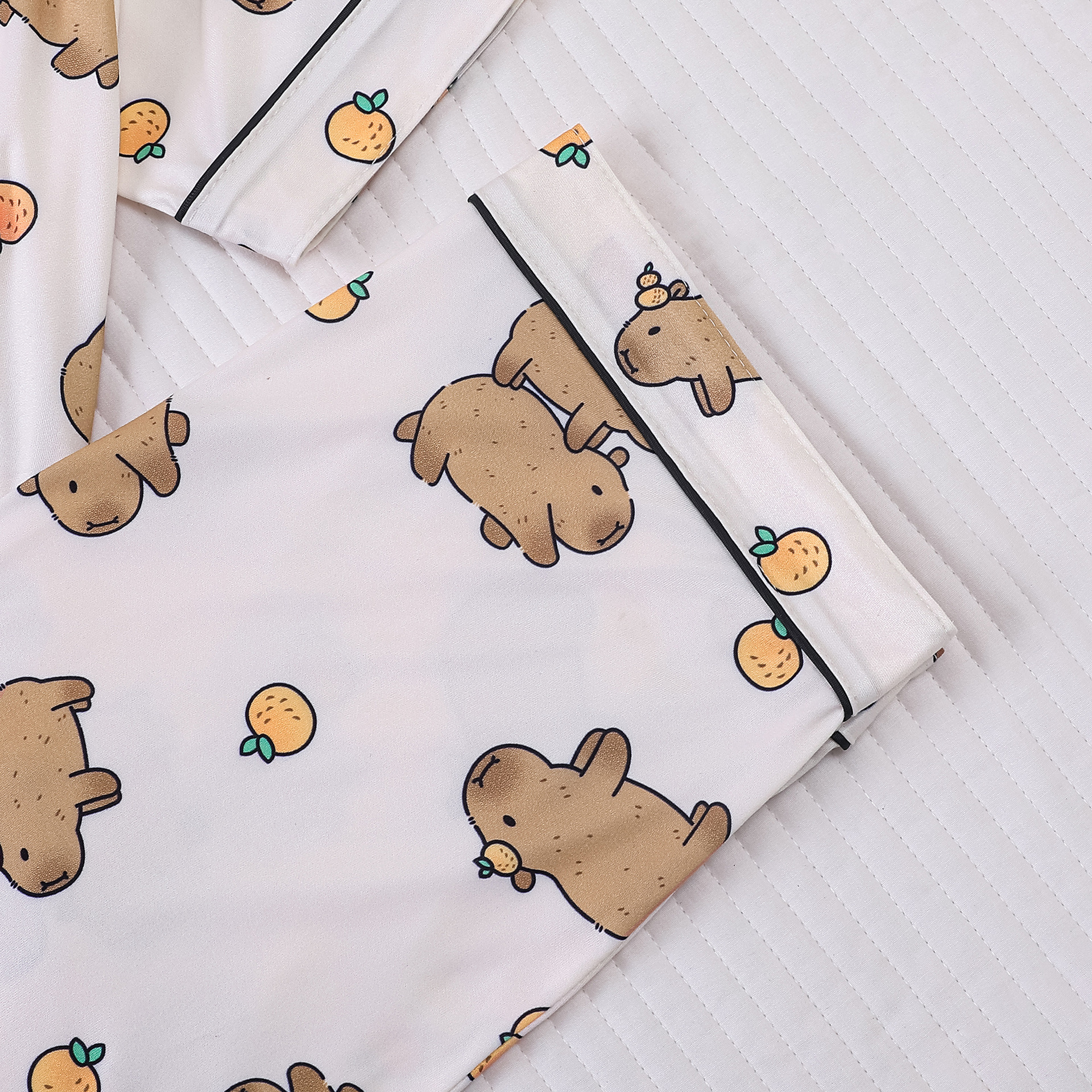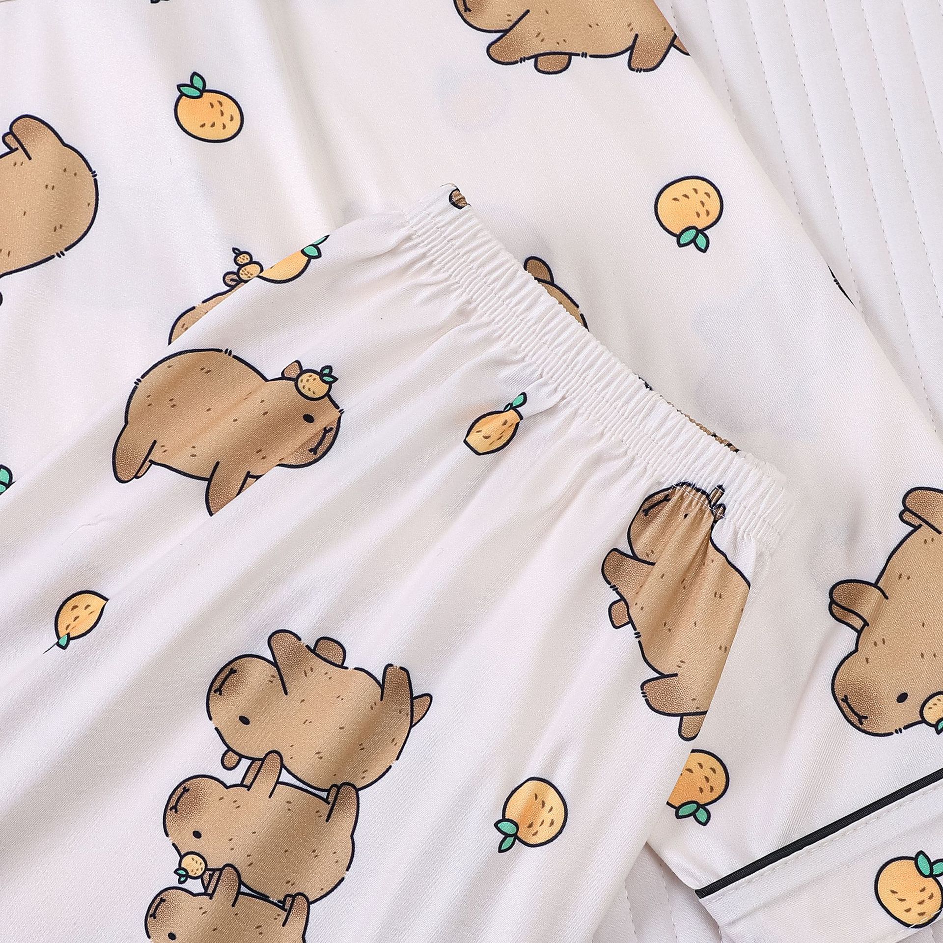 국경 간 대외 무역 인기 여성 잠옷 사계절 프린트 라펠 긴팔 바지 유럽과 미국의 편안한 홈웨어 세트
