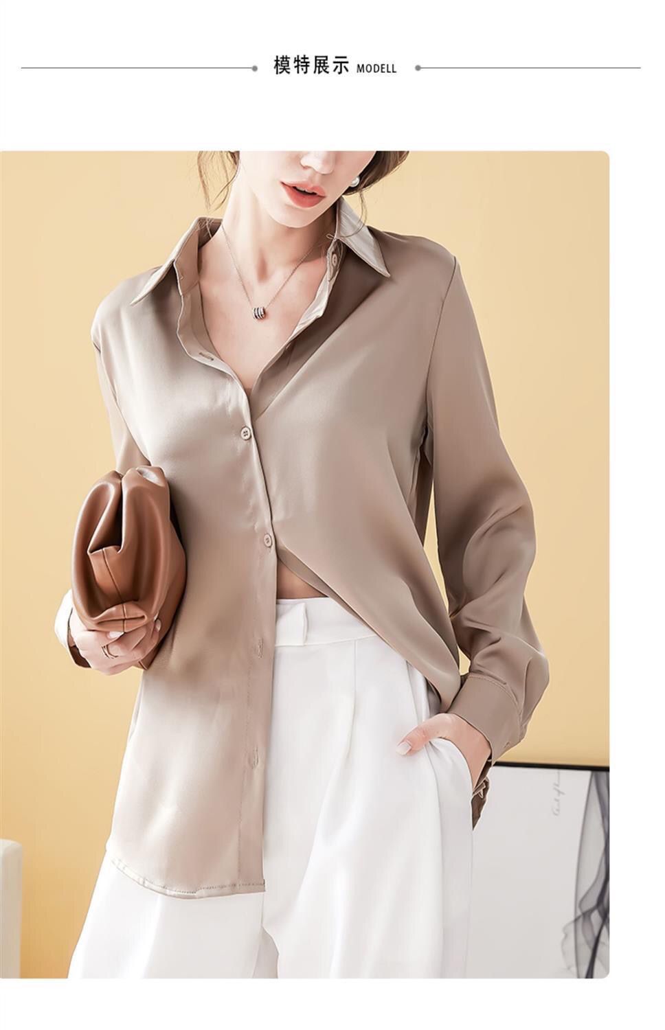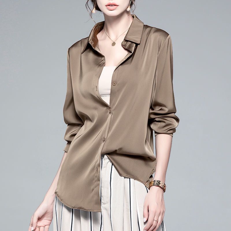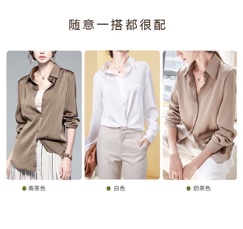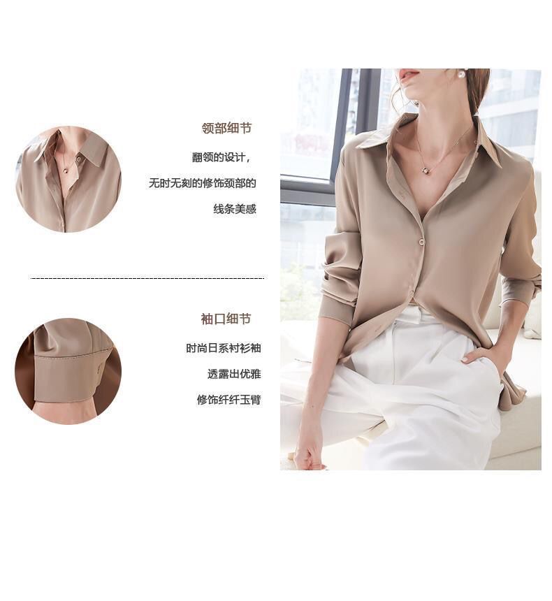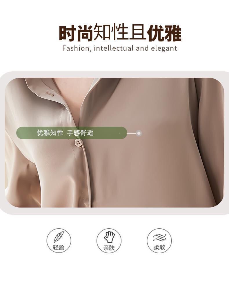 가을 신상 긴팔 여성 상의, 다재다능하고 루즈한 쉬폰 셔츠, 드레이프 새틴 셔츠, 주름 방지스토어 가기