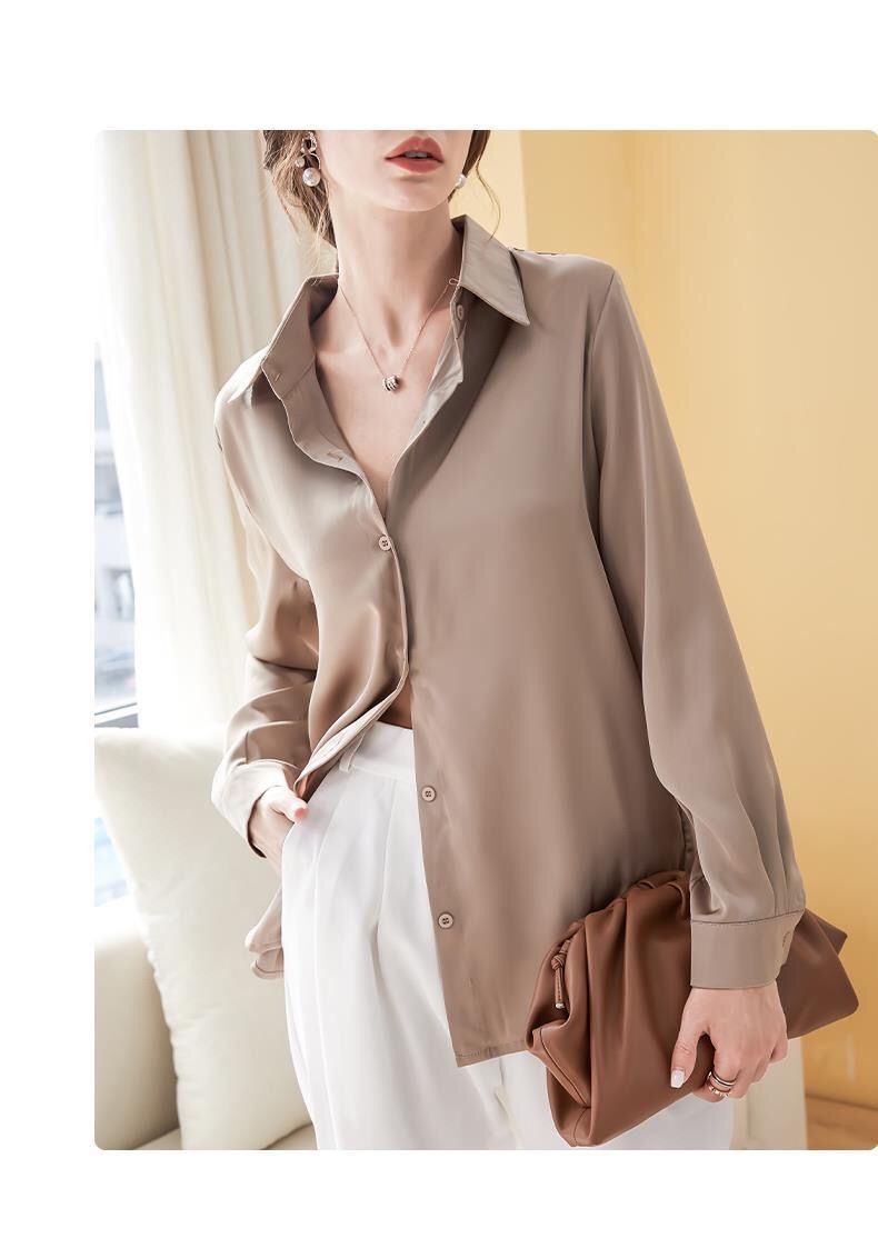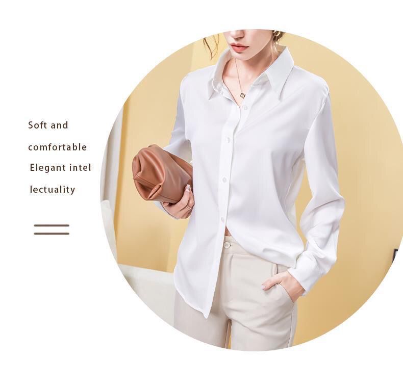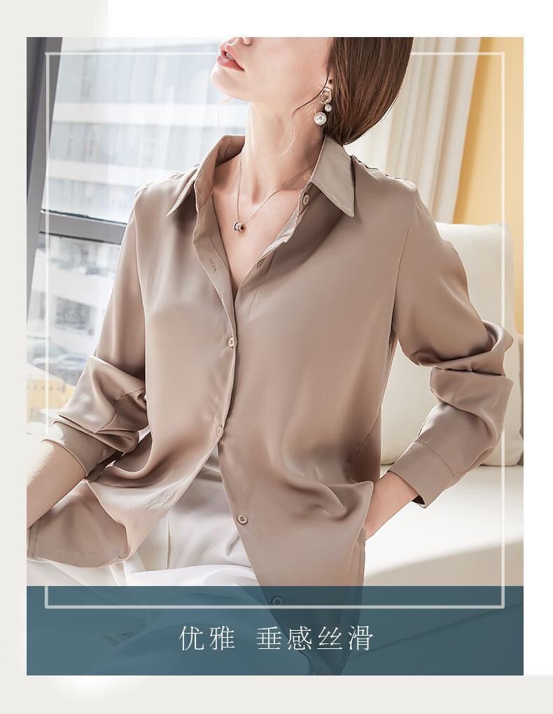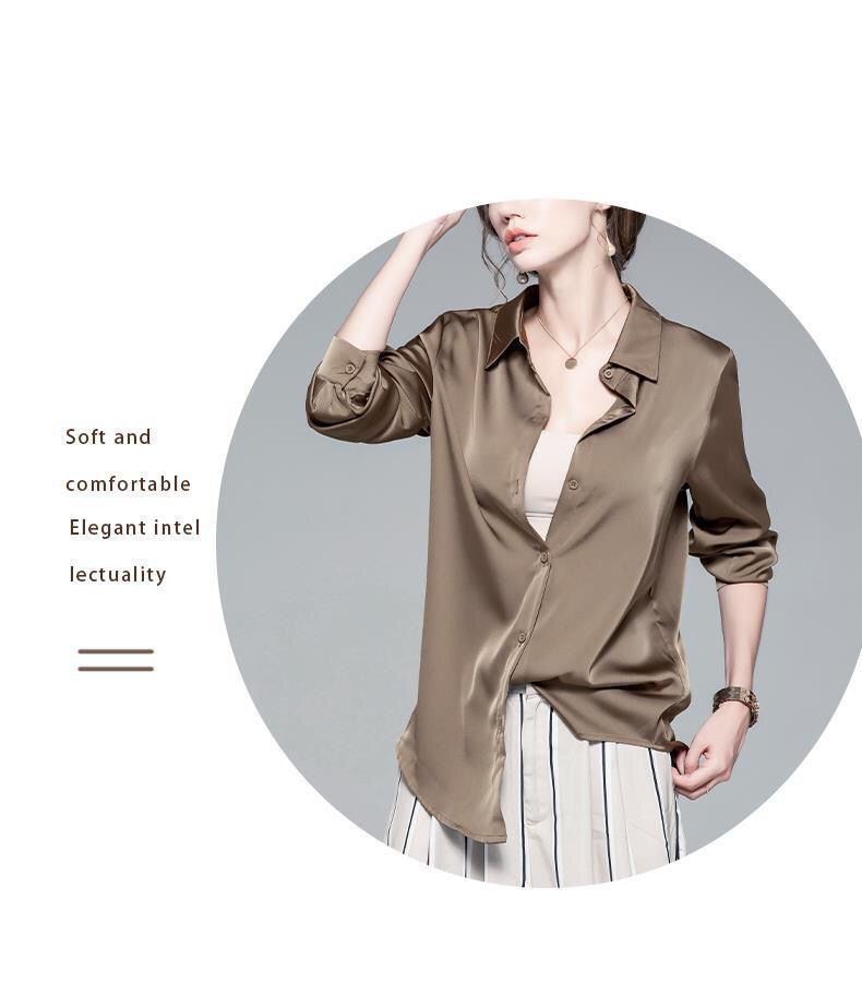 가을 신상 긴팔 여성 상의, 다재다능하고 루즈한 쉬폰 셔츠, 드레이프 새틴 셔츠, 주름 방지스토어 가기