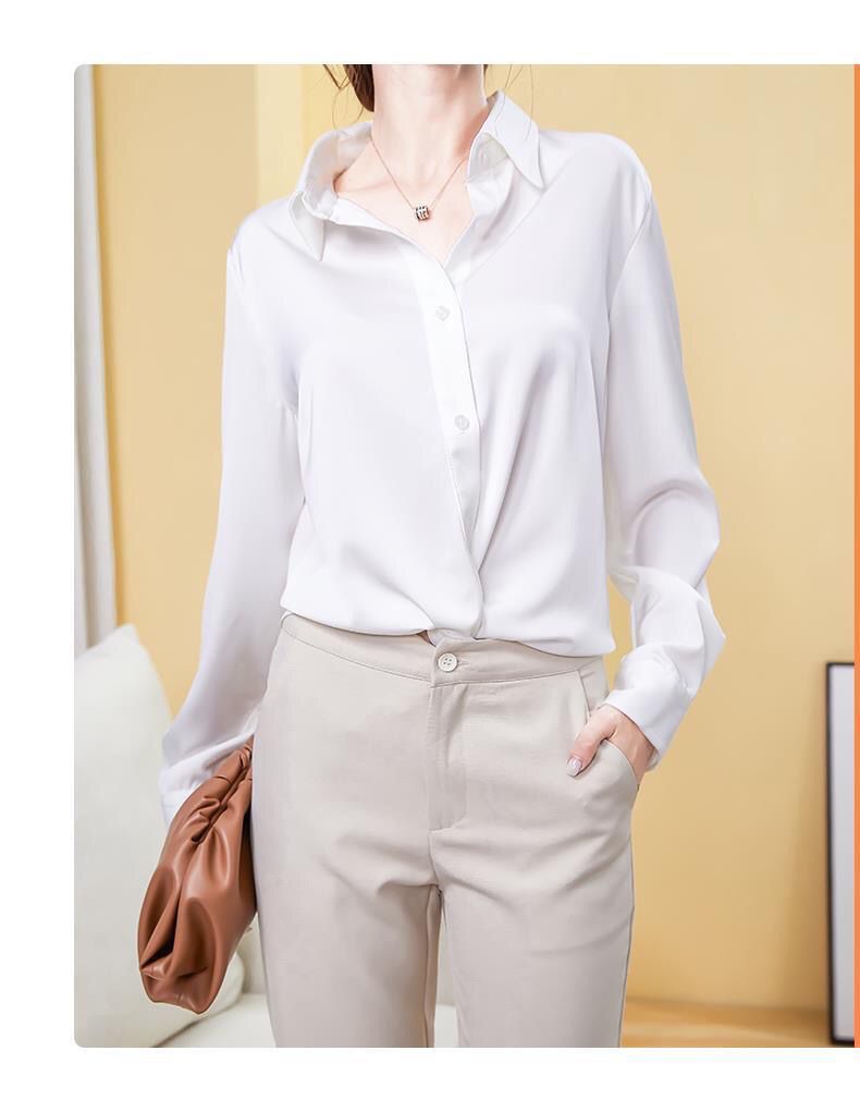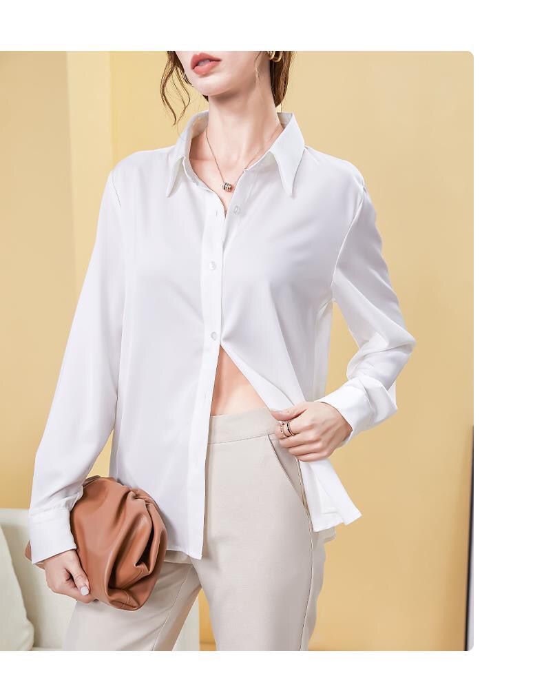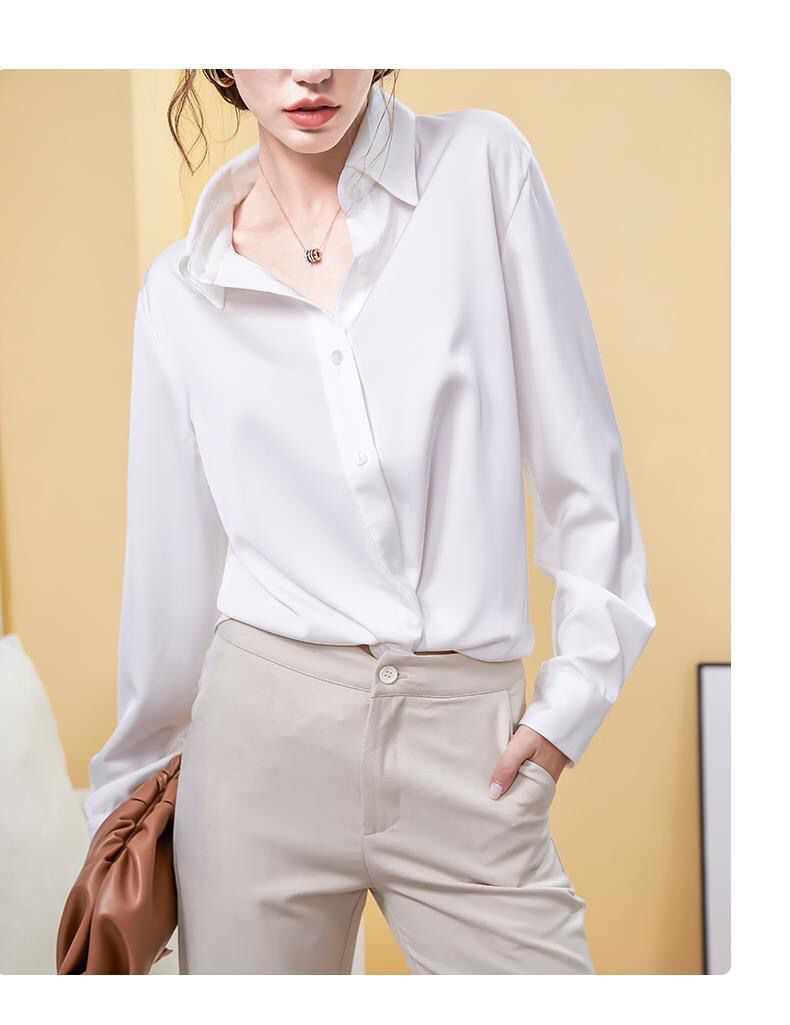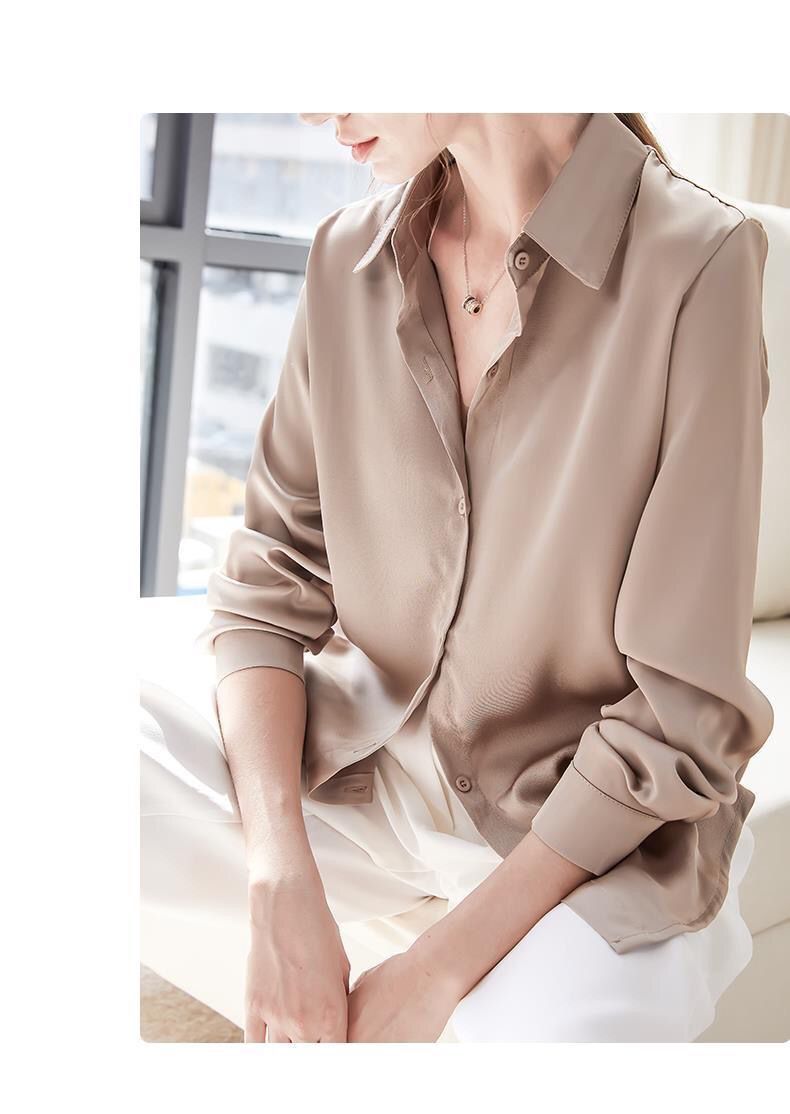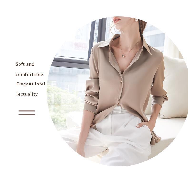 가을 신상 긴팔 여성 상의, 다재다능하고 루즈한 쉬폰 셔츠, 드레이프 새틴 셔츠, 주름 방지