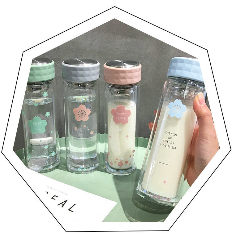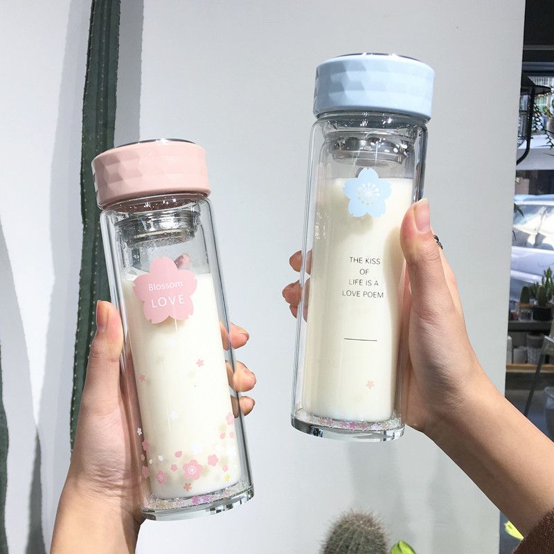 뚜껑이 있는 여성용 화상 방지 유리, 고온 방지 이중 컵, 학생용 차 배수구가 있는 휴대용 투명 물컵