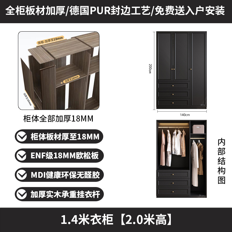프랑스 복고풍 스타일 ENF 등급 유럽 소나무 판자 캐비닛 옷장 홈 침실 작은 아파트 현대 간단한 캐비닛 완제품스토어 가기