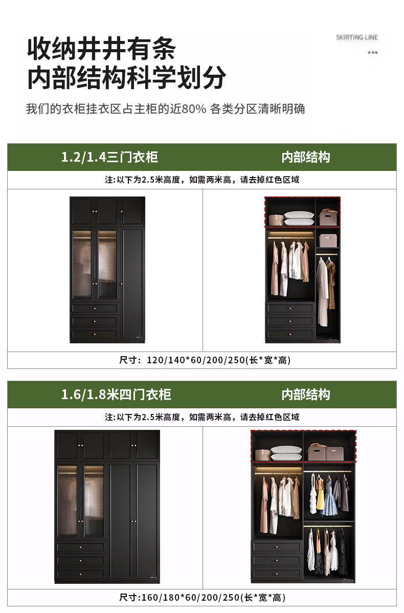 • (목제 도어 모델) 4도어 옷장(길이 1.8m - 높이 2.5m ) 18mm 두께의 ENF 등급 유럽 소나무 보드