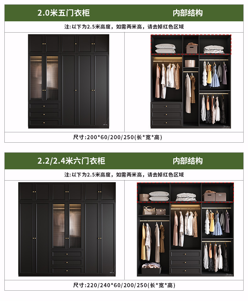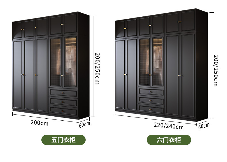 • (목제 도어 모델) 6도어 옷장(길이 2.4m - 높이 2.5m ) 18mm 두께의 ENF 등급 유럽 소나무 보드