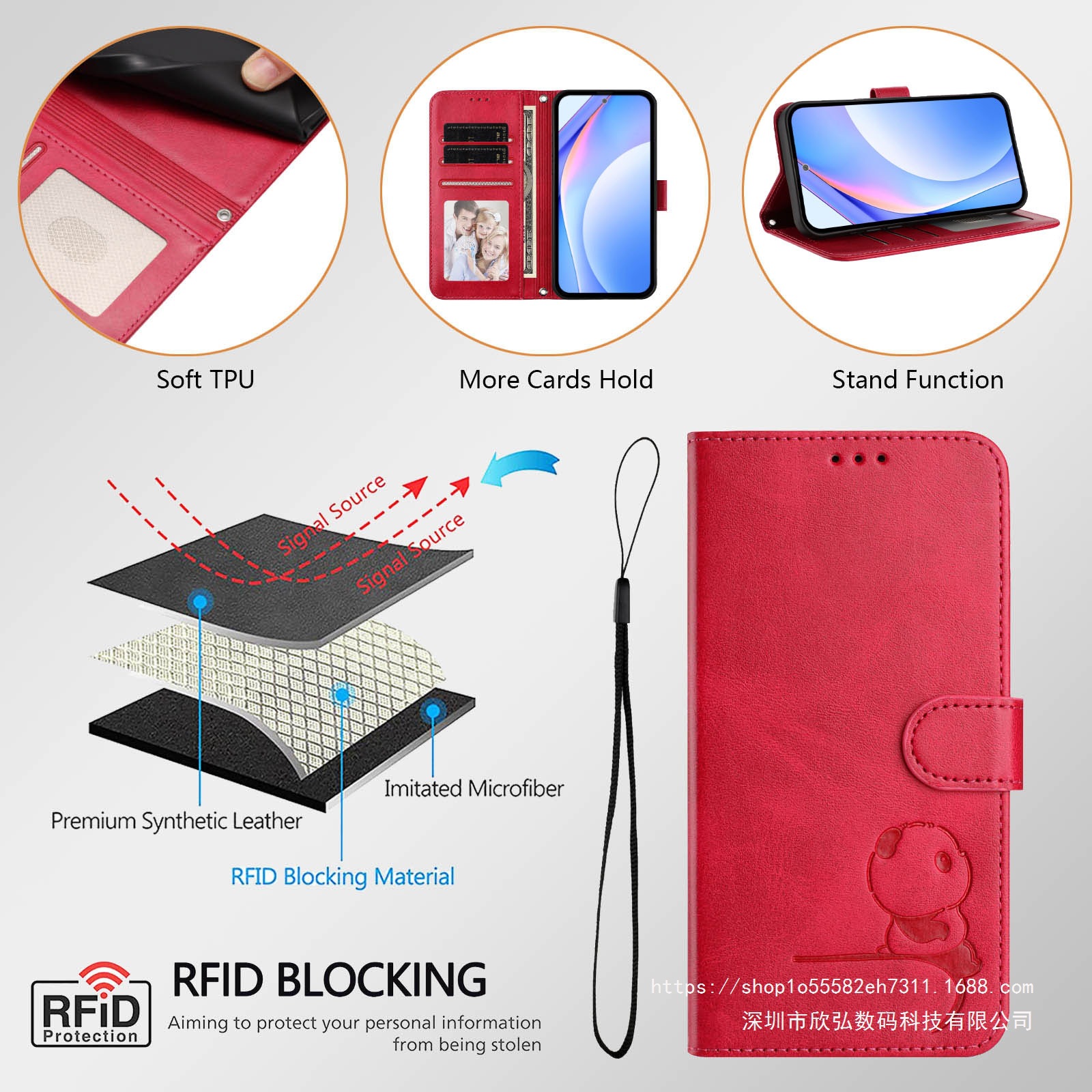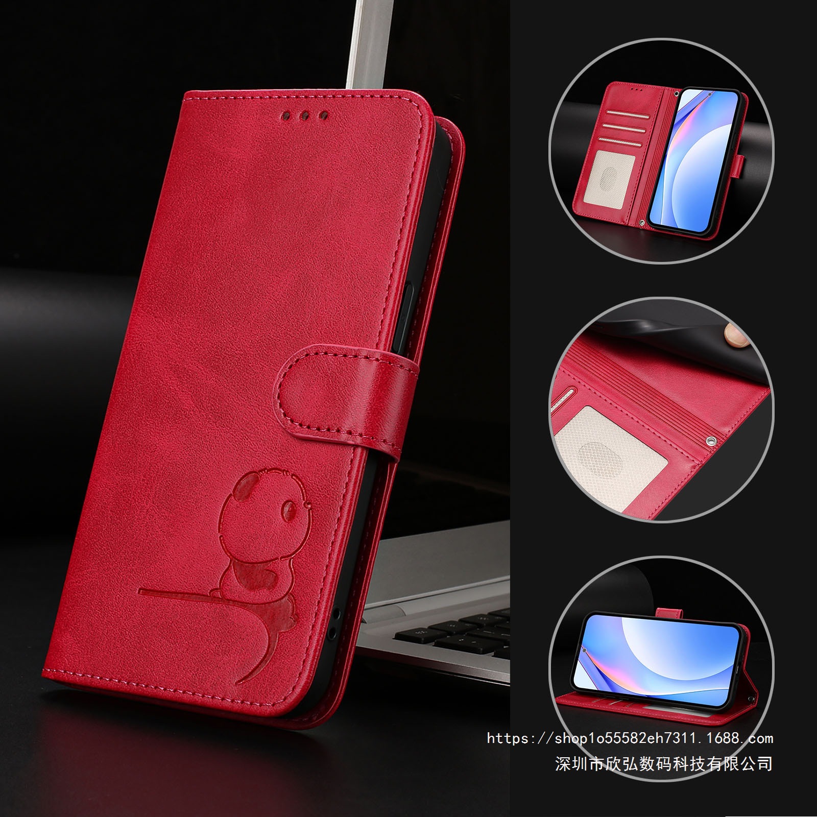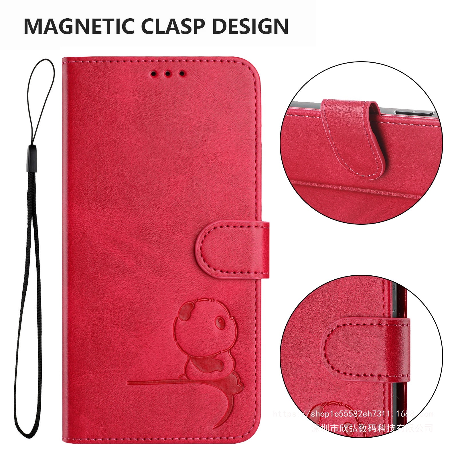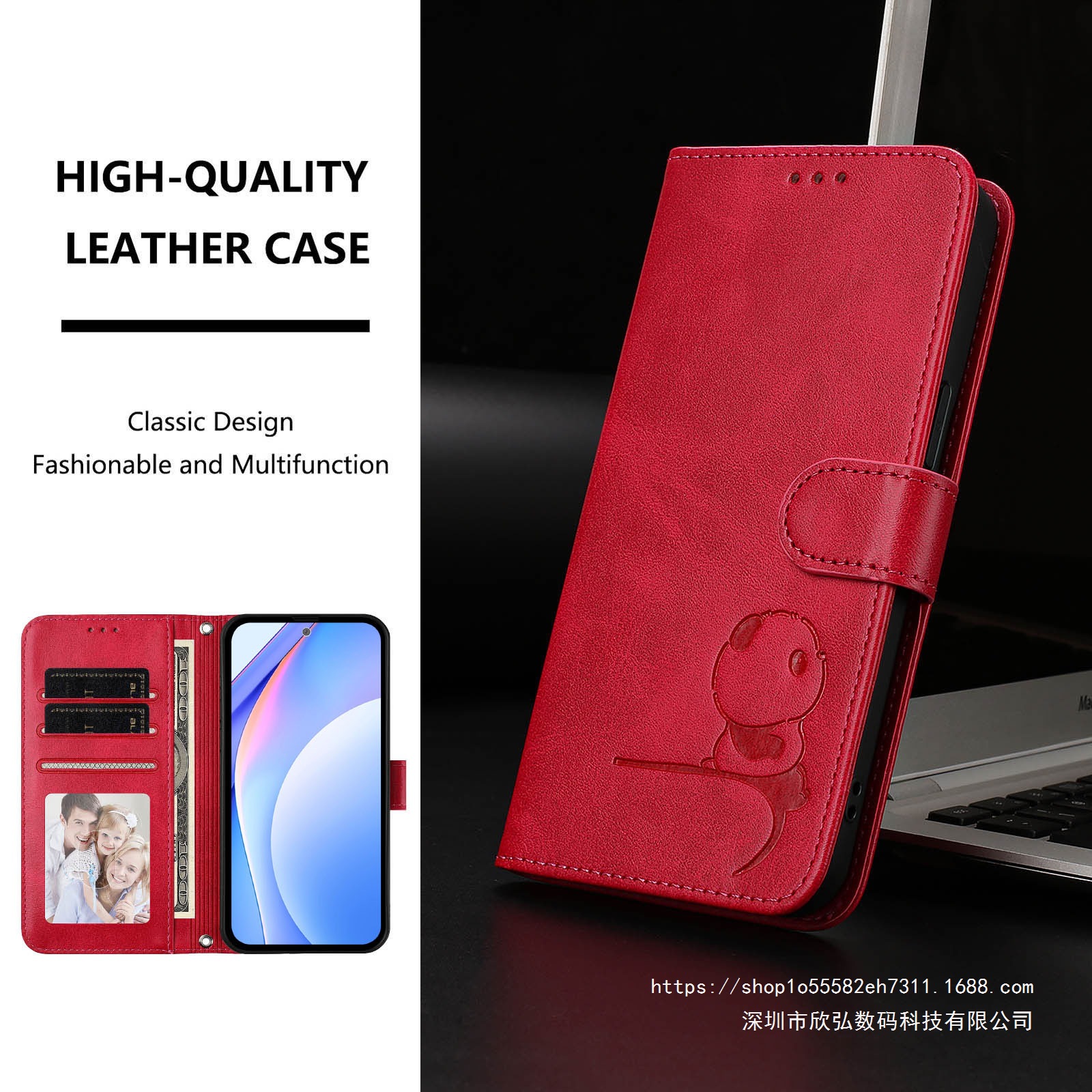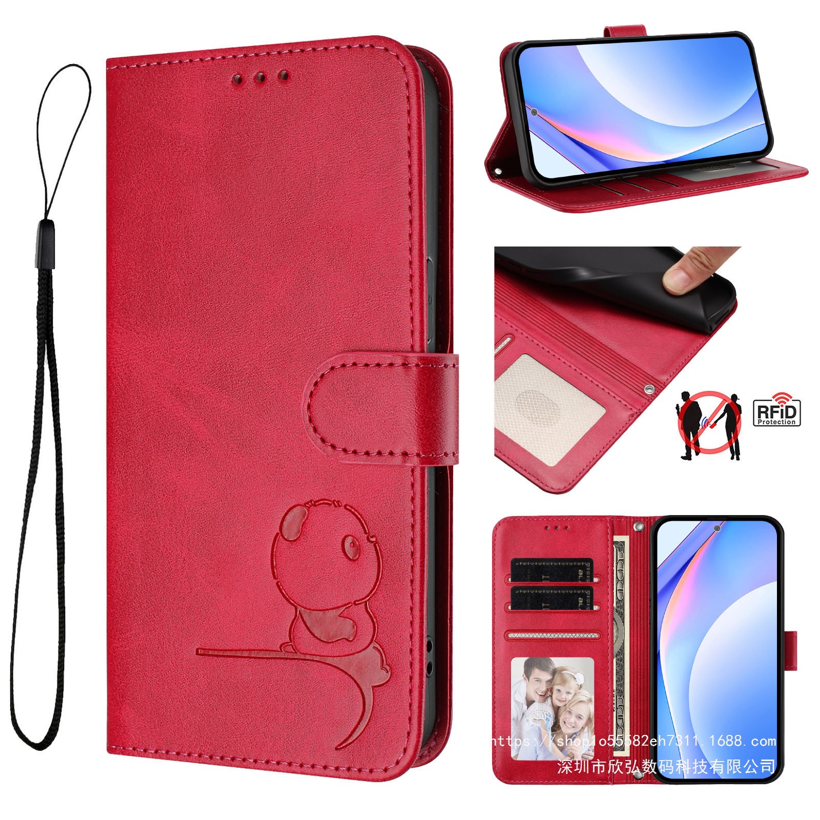 Red Panda 양각 가죽 케이스는 Honor 400Pro 도난 방지 휴대폰 케이스 P80Ultra 플립 카드 지갑에 적합합니다.스토어 가기