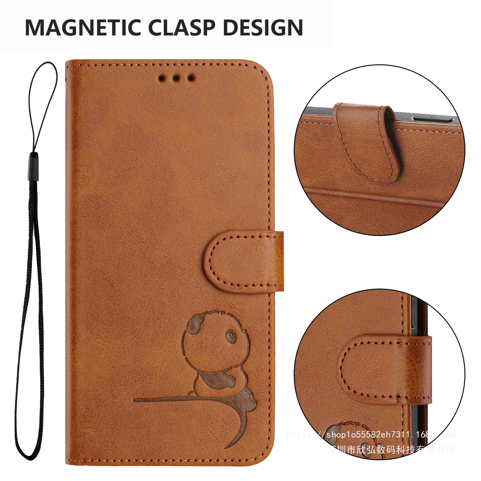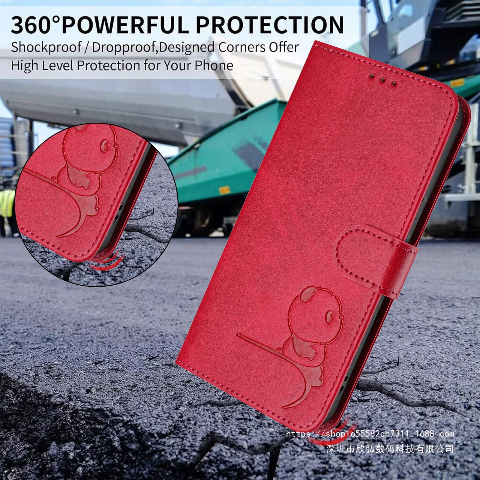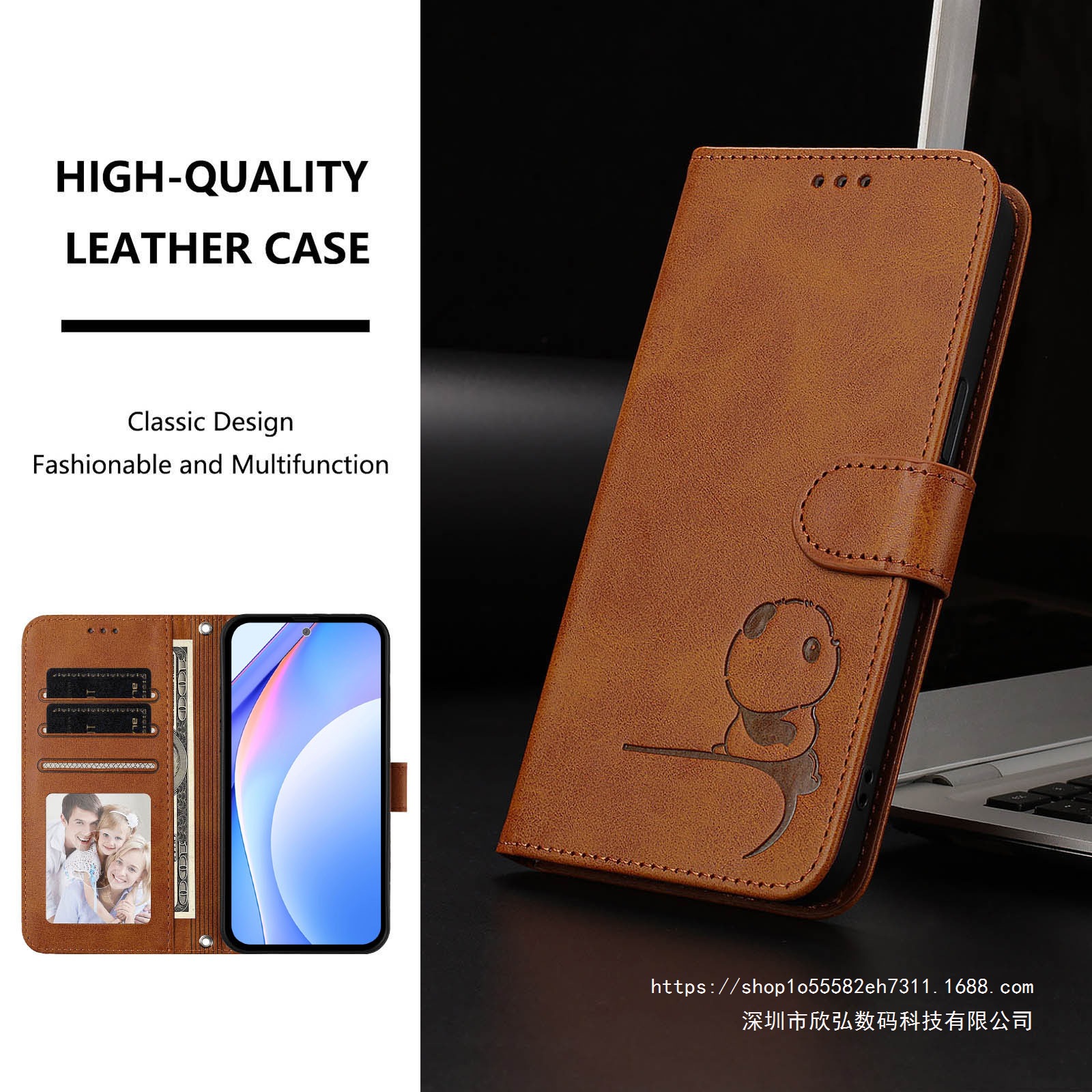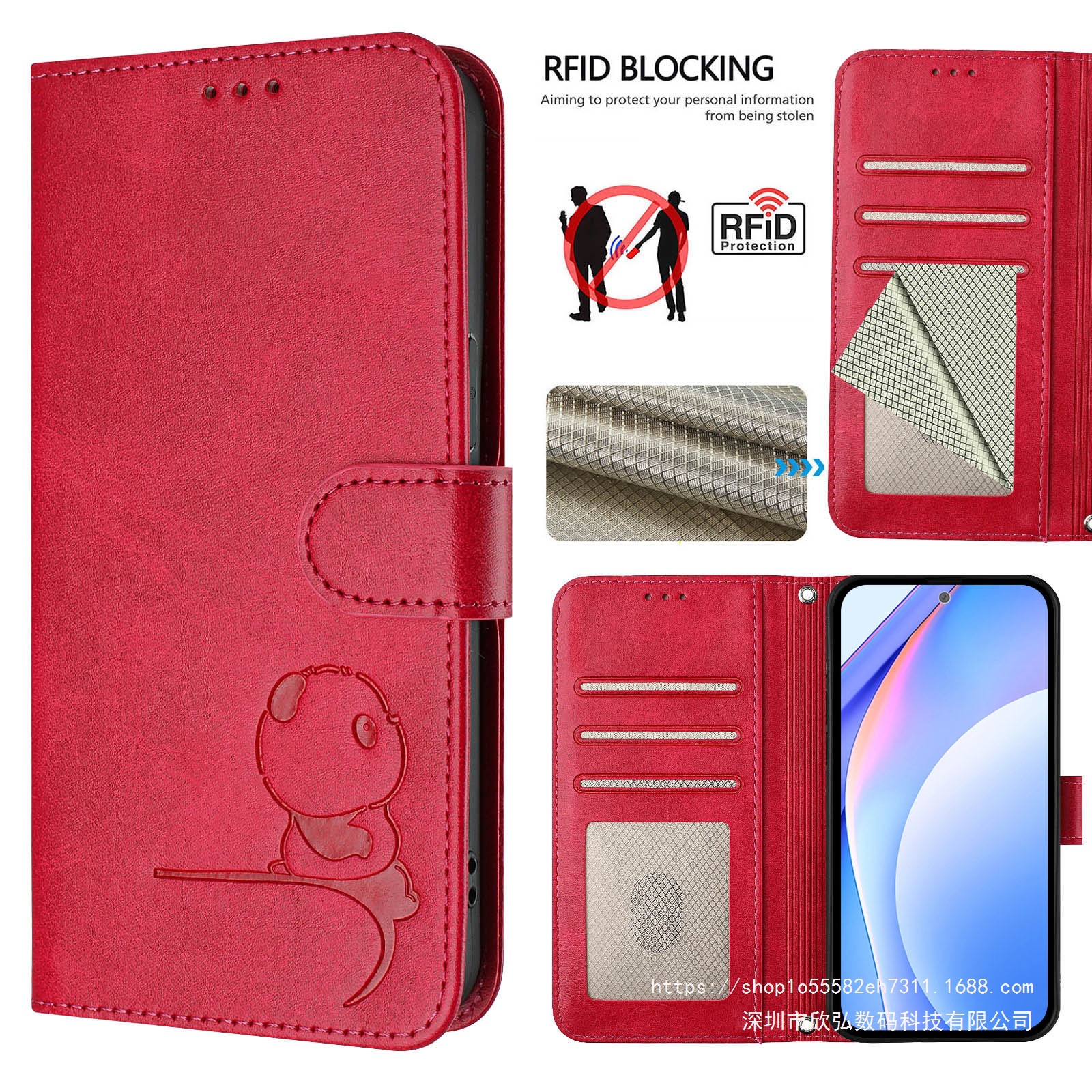 Red Panda 양각 가죽 케이스는 Honor 400Pro 도난 방지 휴대폰 케이스 P80Ultra 플립 카드 지갑에 적합합니다.스토어 가기