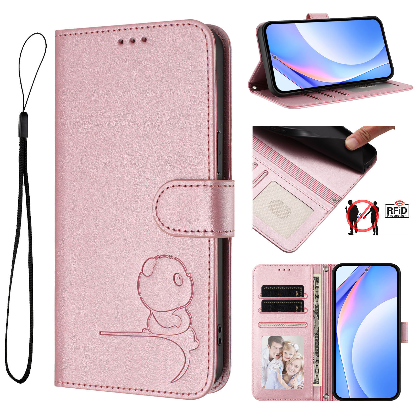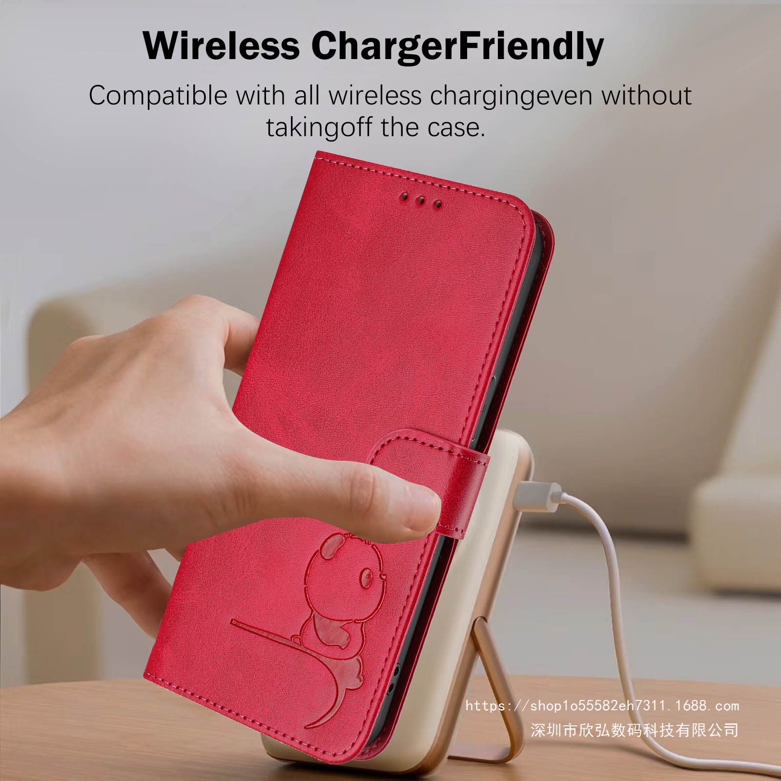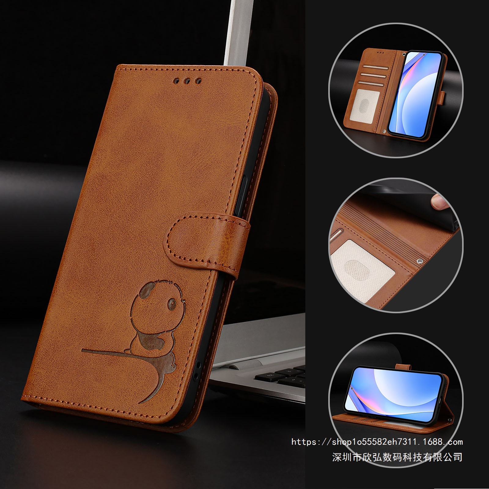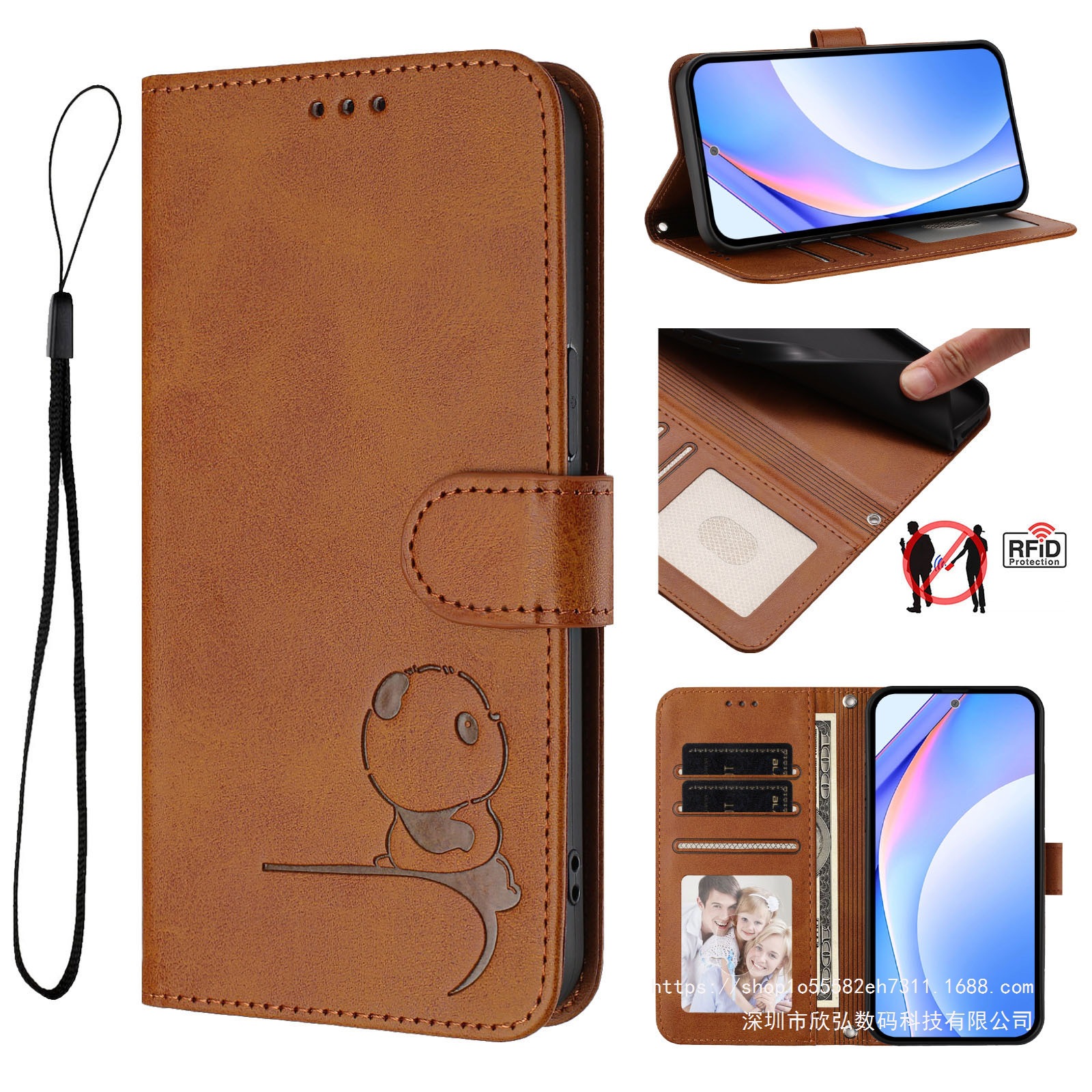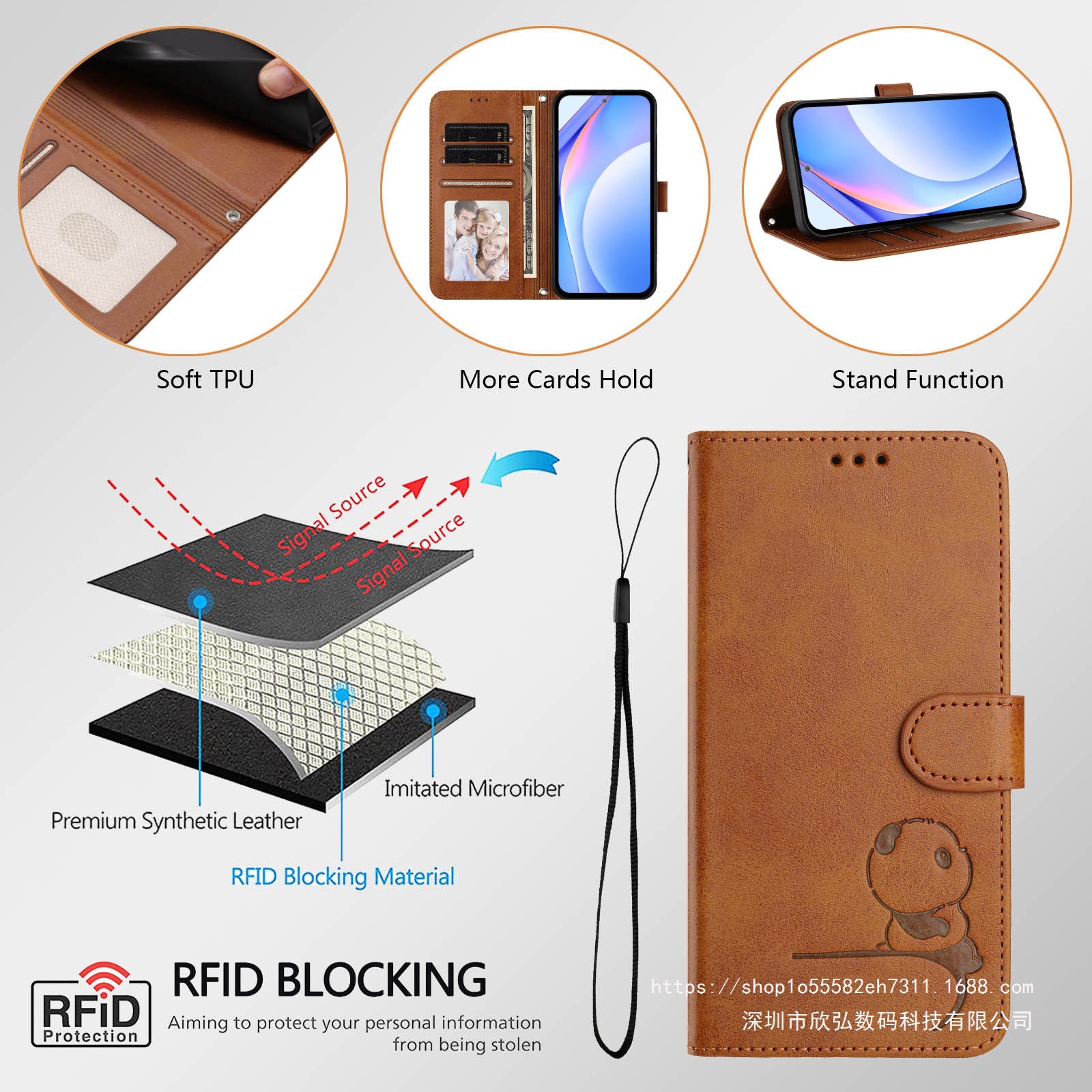 Red Panda 양각 가죽 케이스는 Honor 400Pro 도난 방지 휴대폰 케이스 P80Ultra 플립 카드 지갑에 적합합니다.스토어 가기
