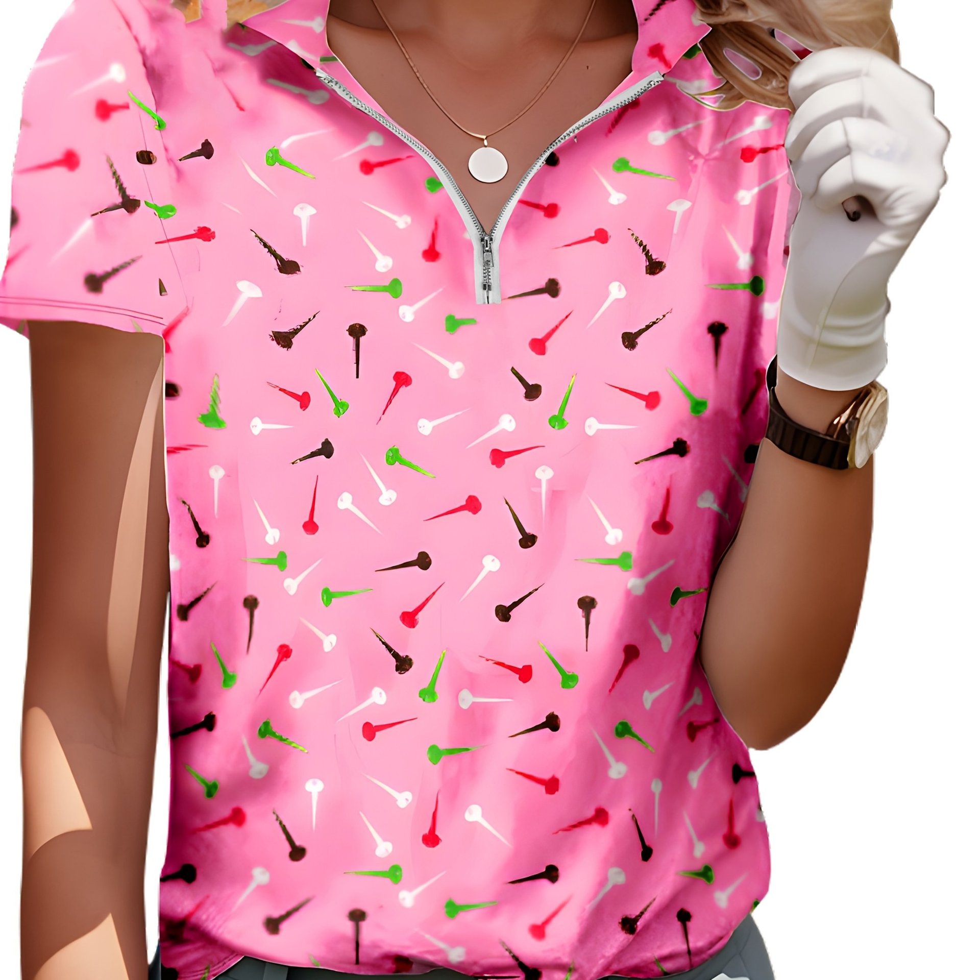 2025년 새로운 유럽과 미국의 활력 넘치는 핑크와 그린 기하학 패턴 여성 캐주얼 골프 셔츠스토어 가기