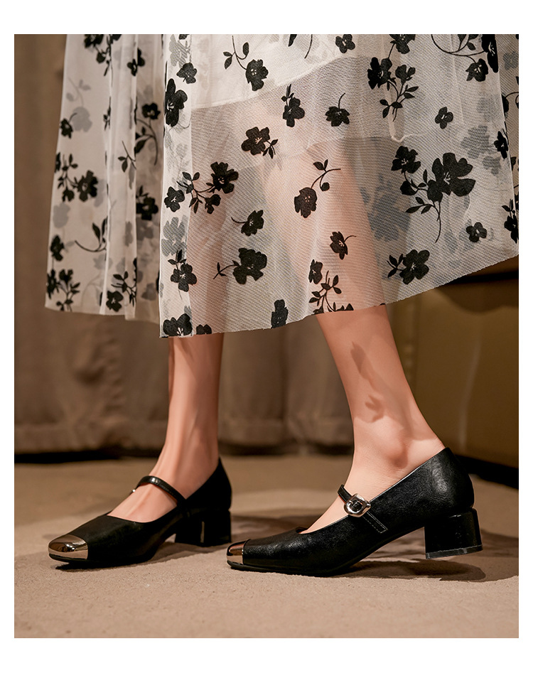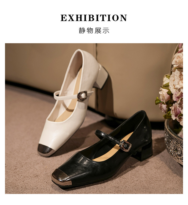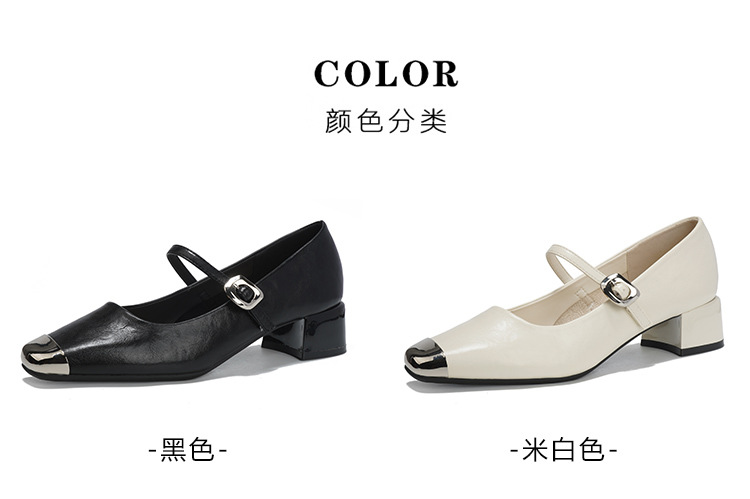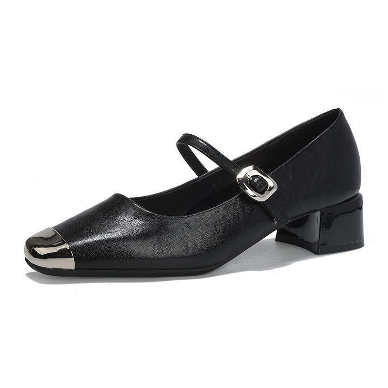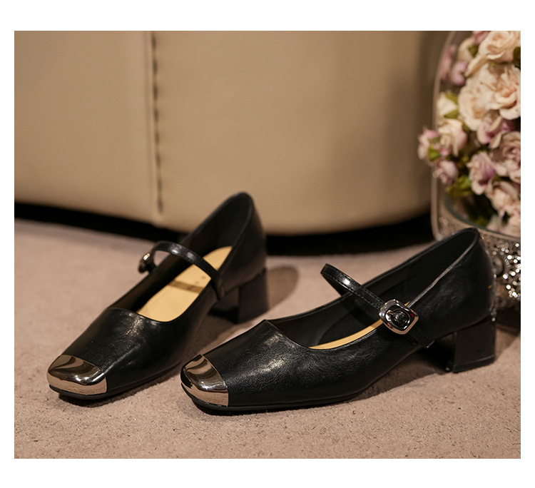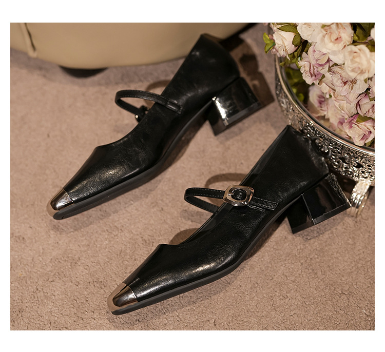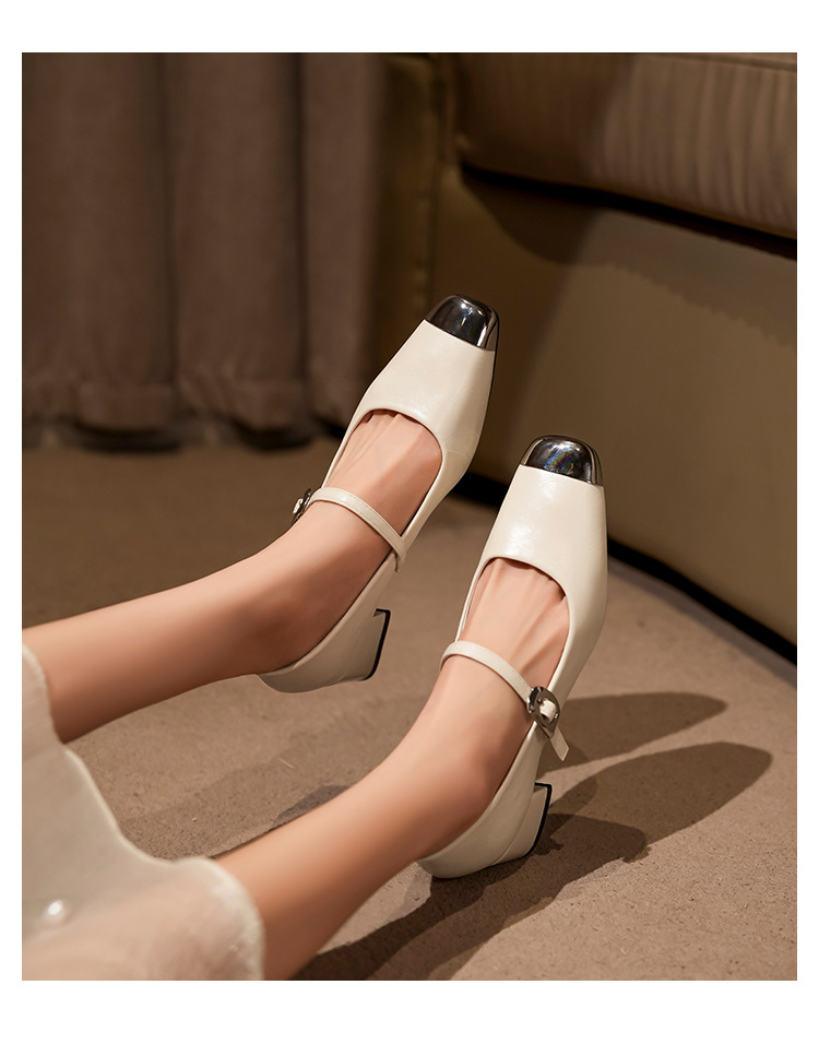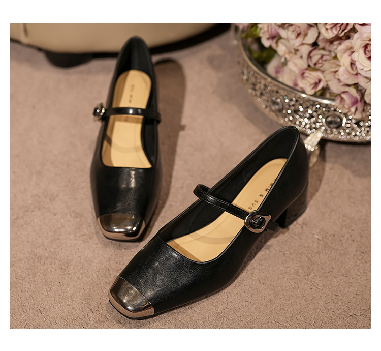 G360-2 여성용 메탈 스퀘어 토 메리 제인 슈즈 2025 신작 가을 중간 두꺼운 굽 다용도 원라인 스트랩 작은 가죽 신발스토어 가기