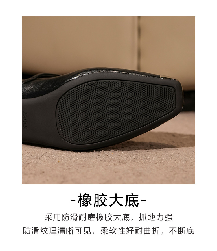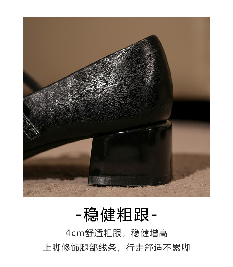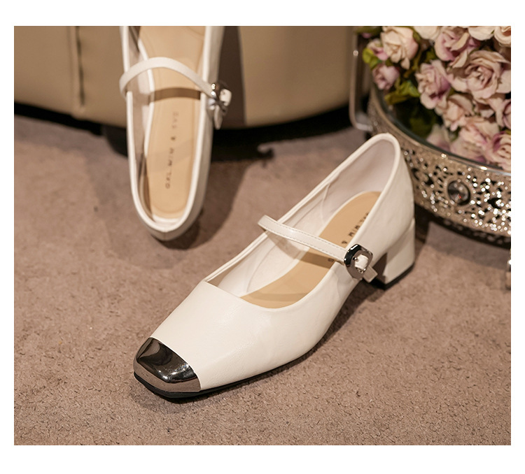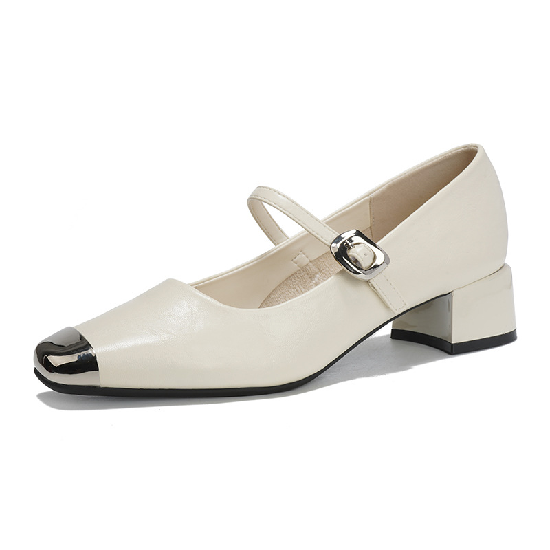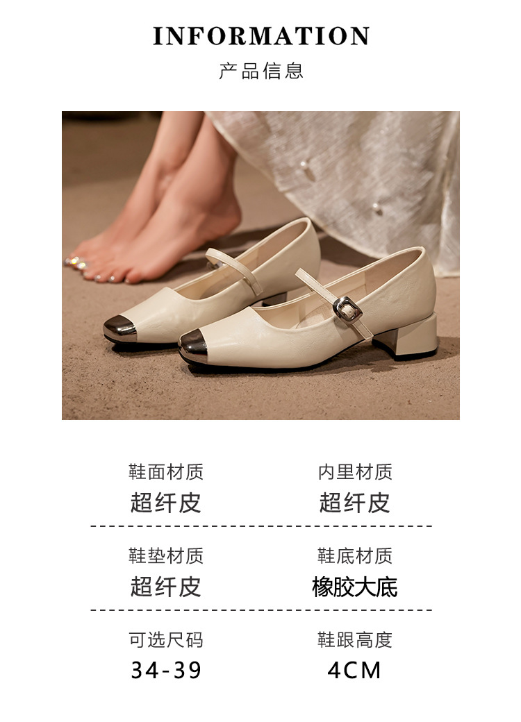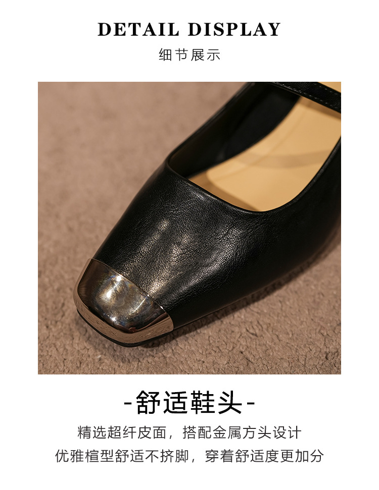 G360-2 여성용 메탈 스퀘어 토 메리 제인 슈즈 2025 신작 가을 중간 두꺼운 굽 다용도 원라인 스트랩 작은 가죽 신발스토어 가기