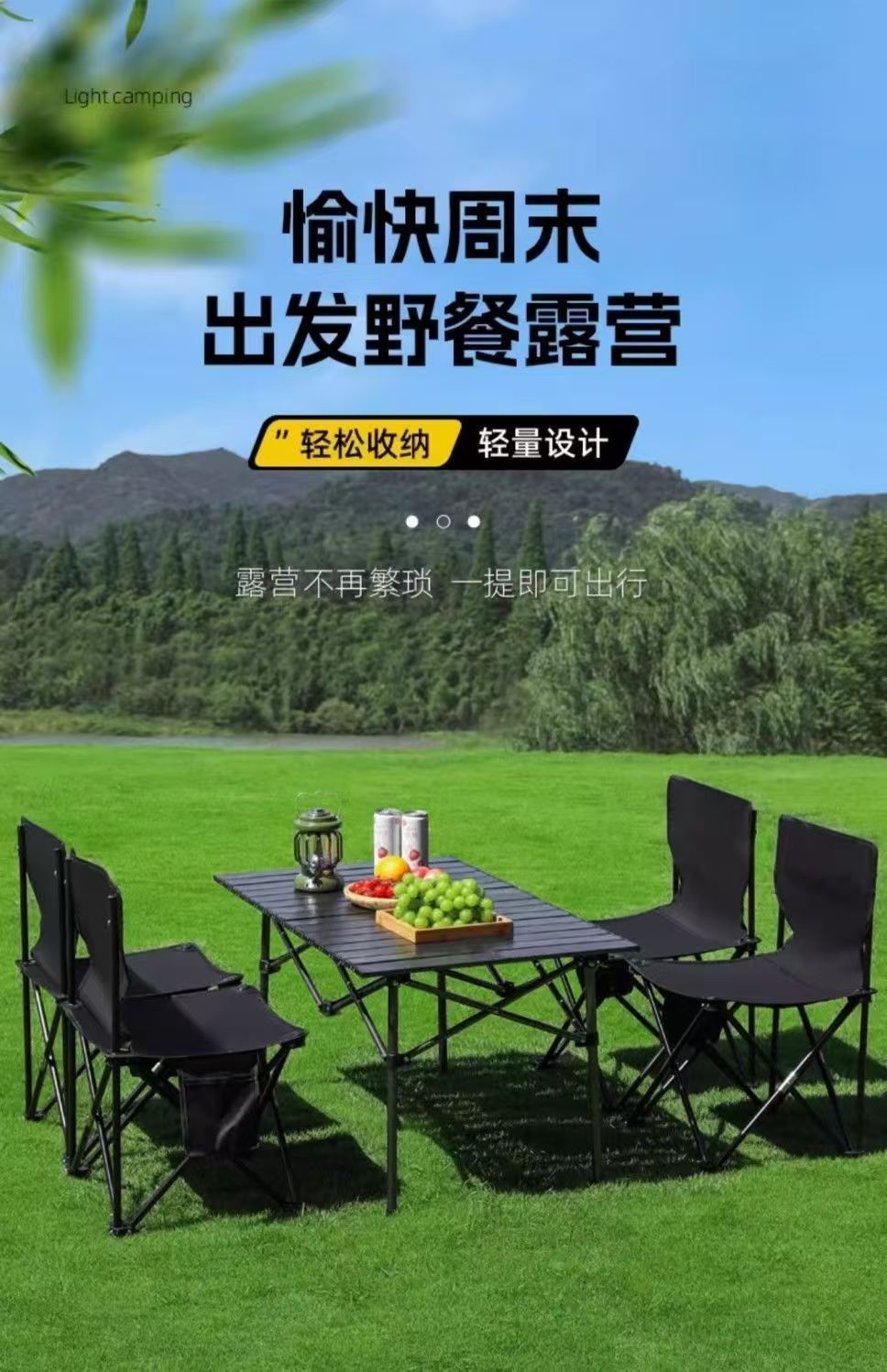 • 블랙 롱 테이블 120CM [수납 가방 + 두꺼운 브래킷 포함]