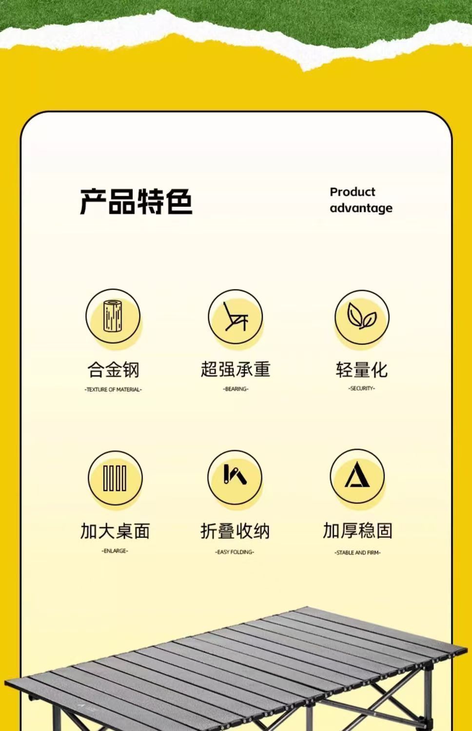 • 노란색 긴 테이블 120CM [무료 수납 가방 + 두꺼운 브래킷]