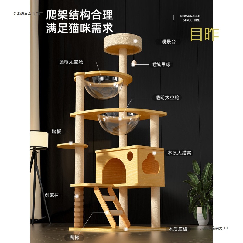 고양이 클라이밍 프레임, 고양이 둥지, 고양이 트리, 원목 일체형 우주 캡슐, 스카이 컬럼 고양이 선반, 삼나무 장난감, 고양이 용품 도매스토어 가기