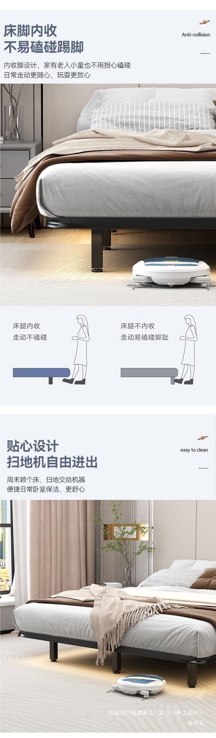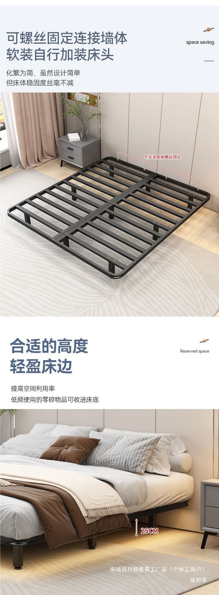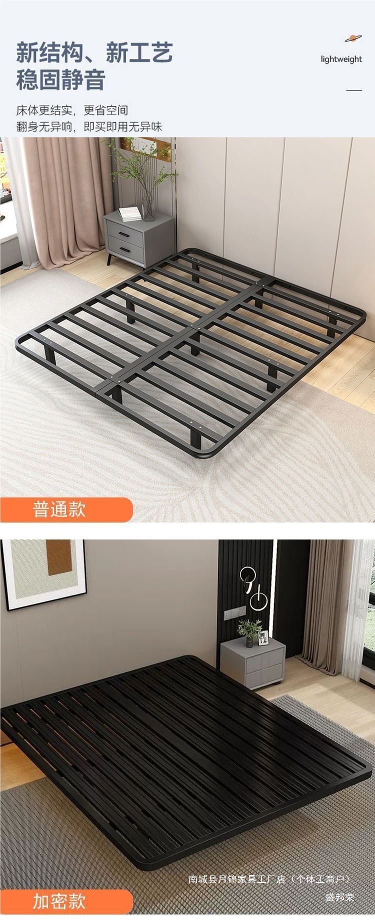 서스펜션 침대, 모던하고 심플한 침대 없음, 일본식 미니멀하고 조용한 더블 침대, 전체 강철 뼈대, 마스터 침실 철제 침대 프레임스토어 가기