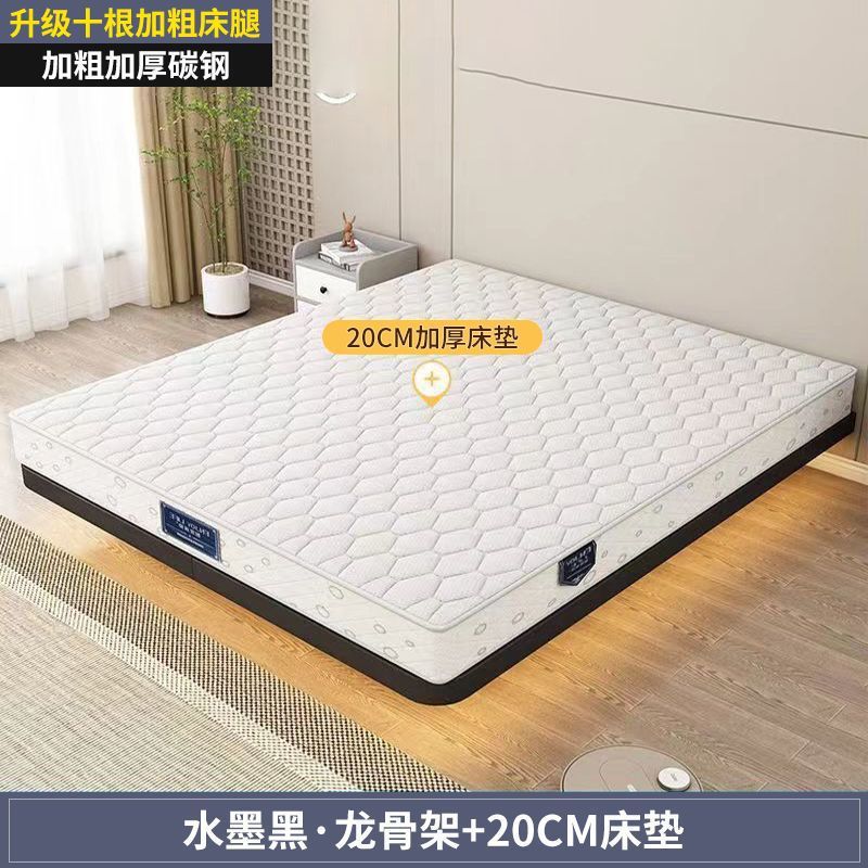 서스펜션 침대, 모던하고 심플한 침대 없음, 일본식 미니멀하고 조용한 더블 침대, 전체 강철 뼈대, 마스터 침실 철제 침대 프레임