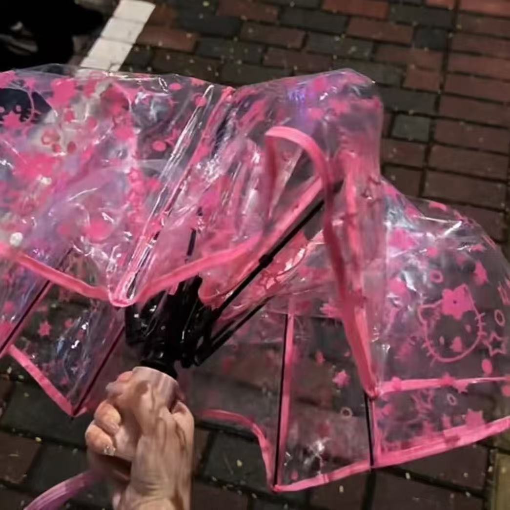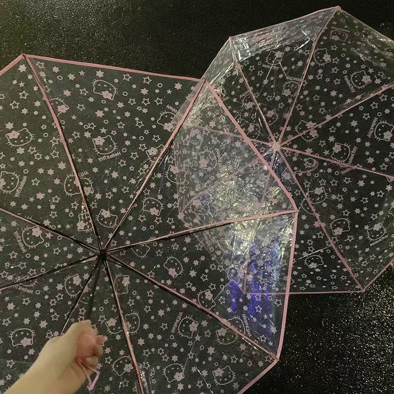 hellokitty 우산 고급스러운 헬로 키티 투명 우산 여성 2024 신입생 학교 특별 휴대용스토어 가기