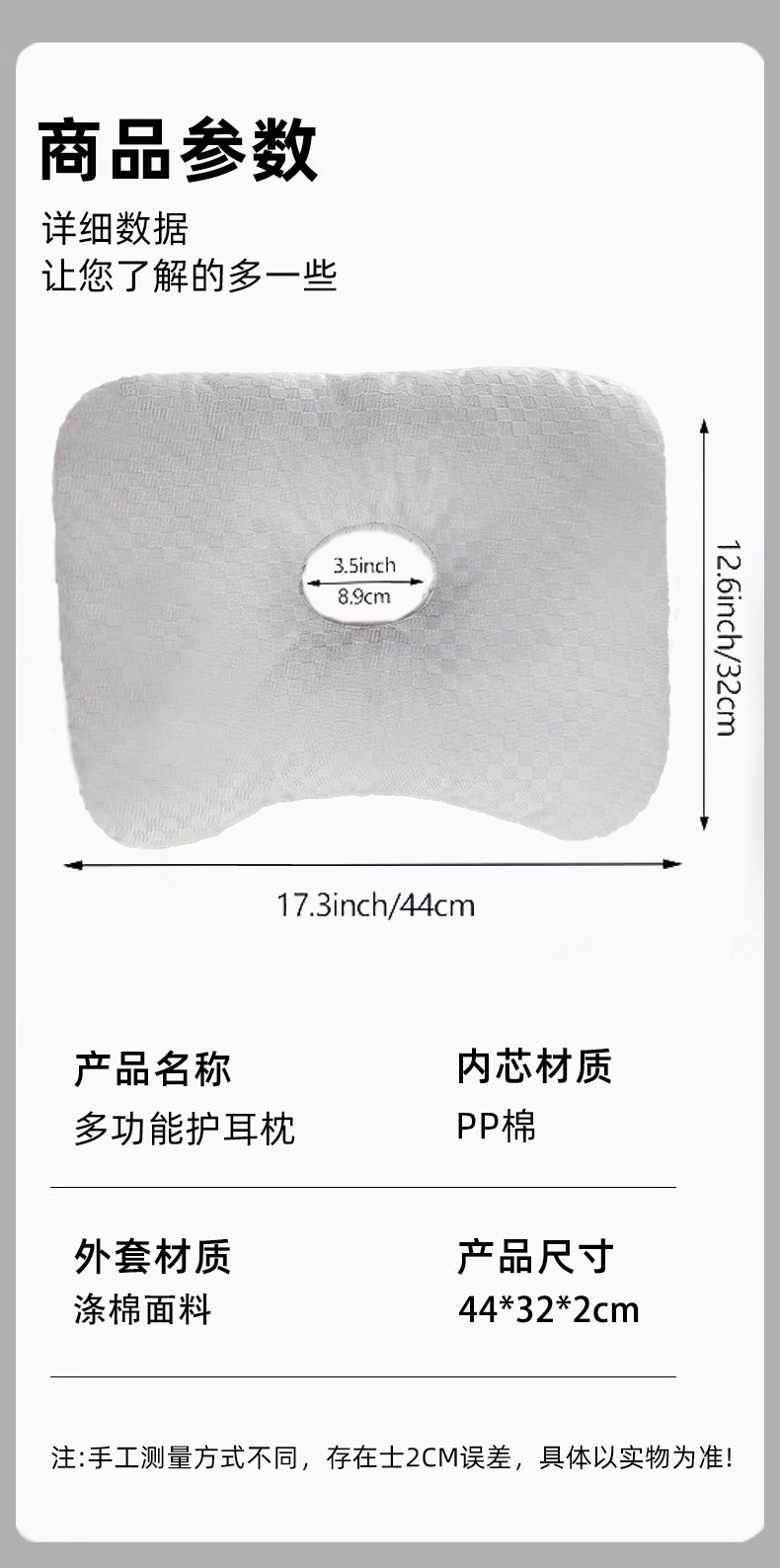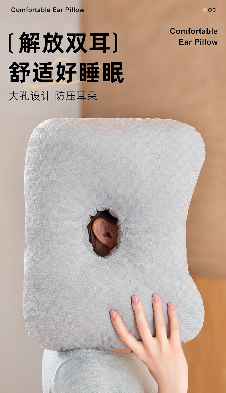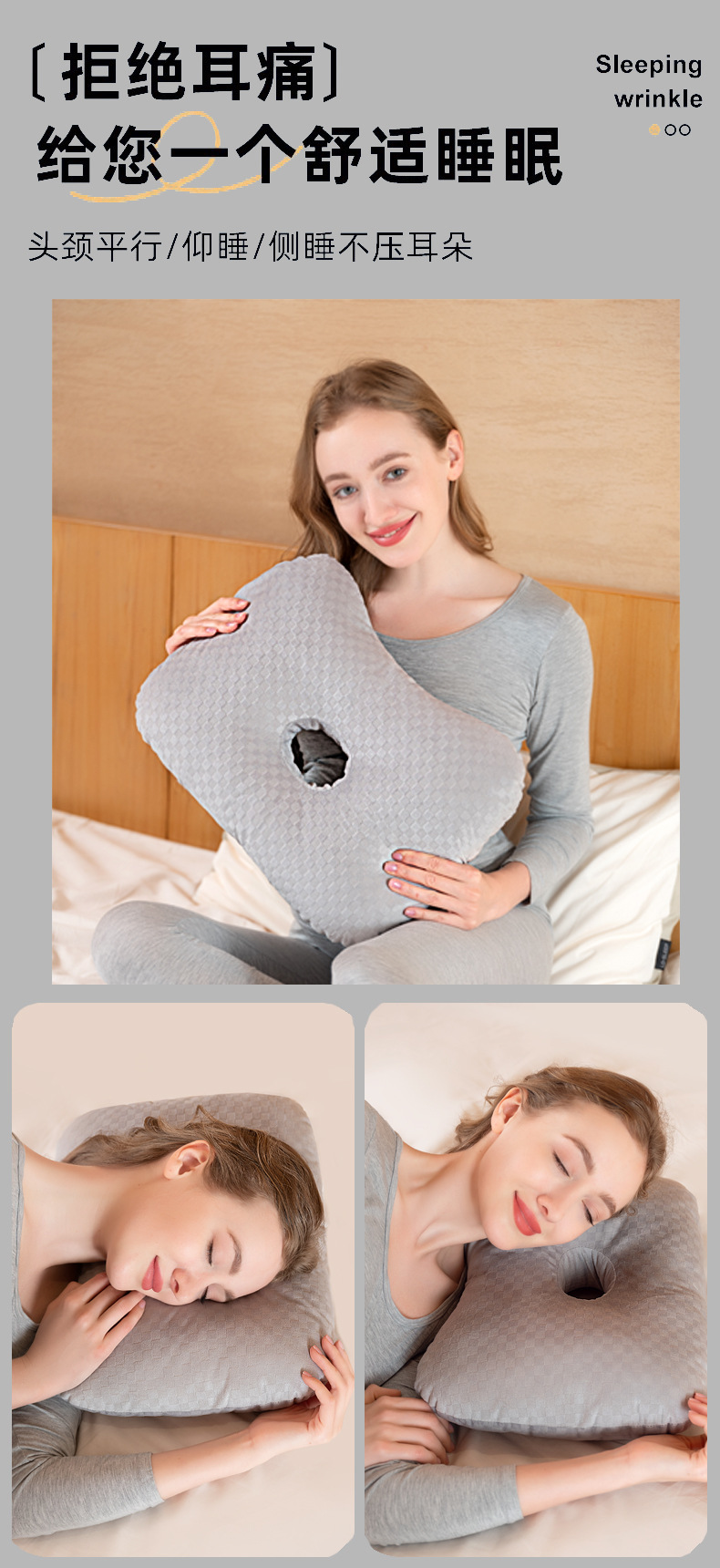 [국경 간] 귀 피어싱 베개, 귀를 압박하지 않는 단일 구멍, 측면 수면용 피어싱, 귀 통증을 완화하는 구멍이 있는 귀 보호 베개