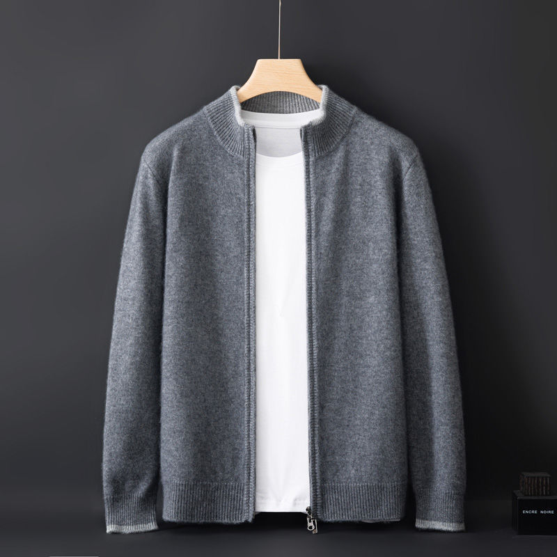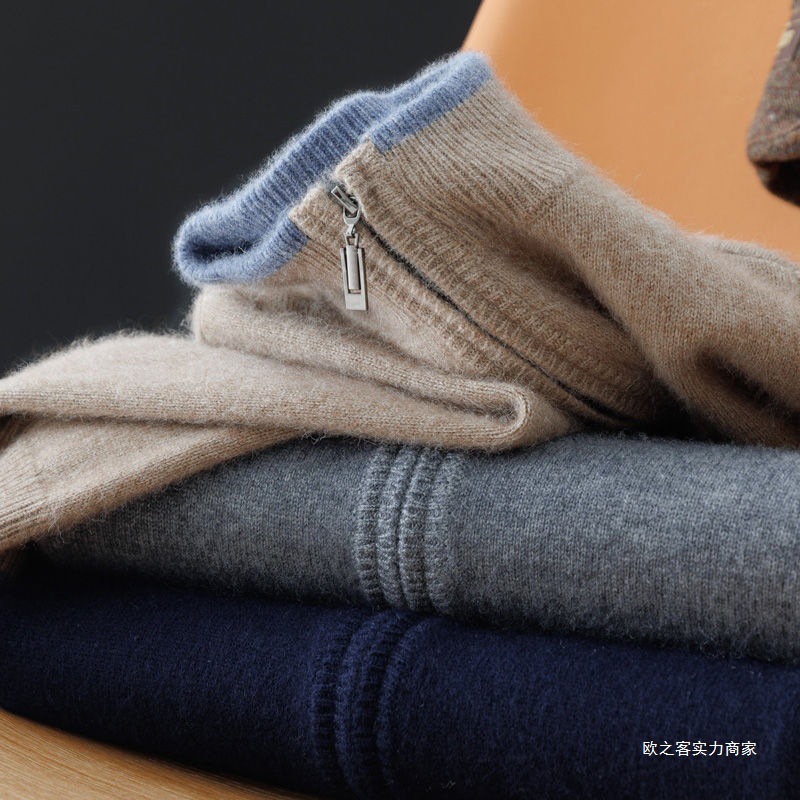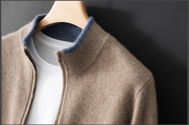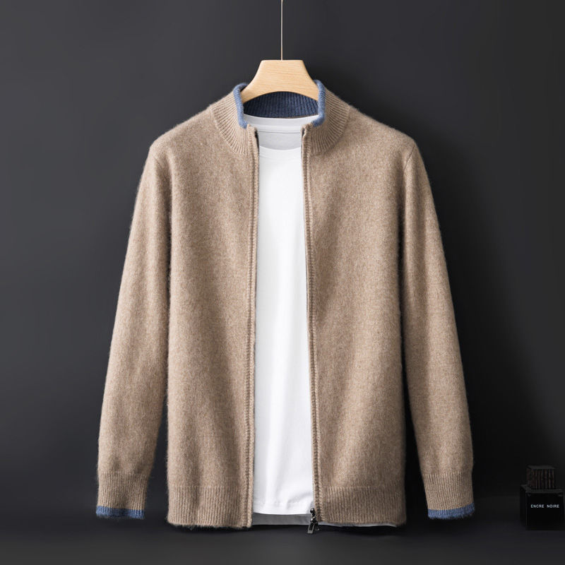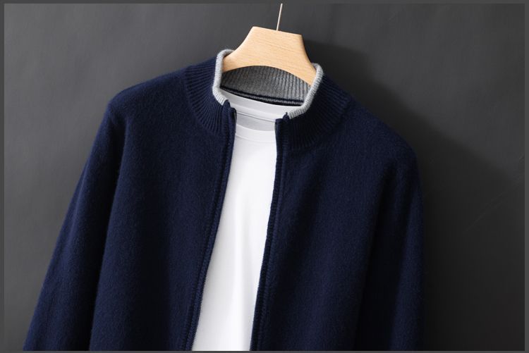 남성용 컬러 블록 긴 소매 니트 지퍼 코트 루즈 캐주얼 두꺼운 플러스 사이즈 탑스토어 가기