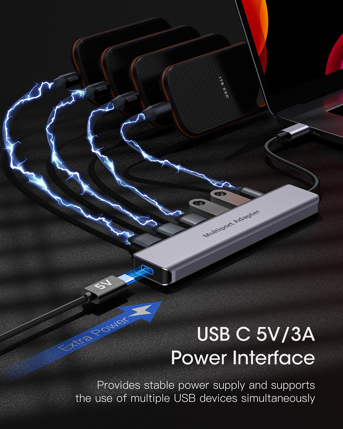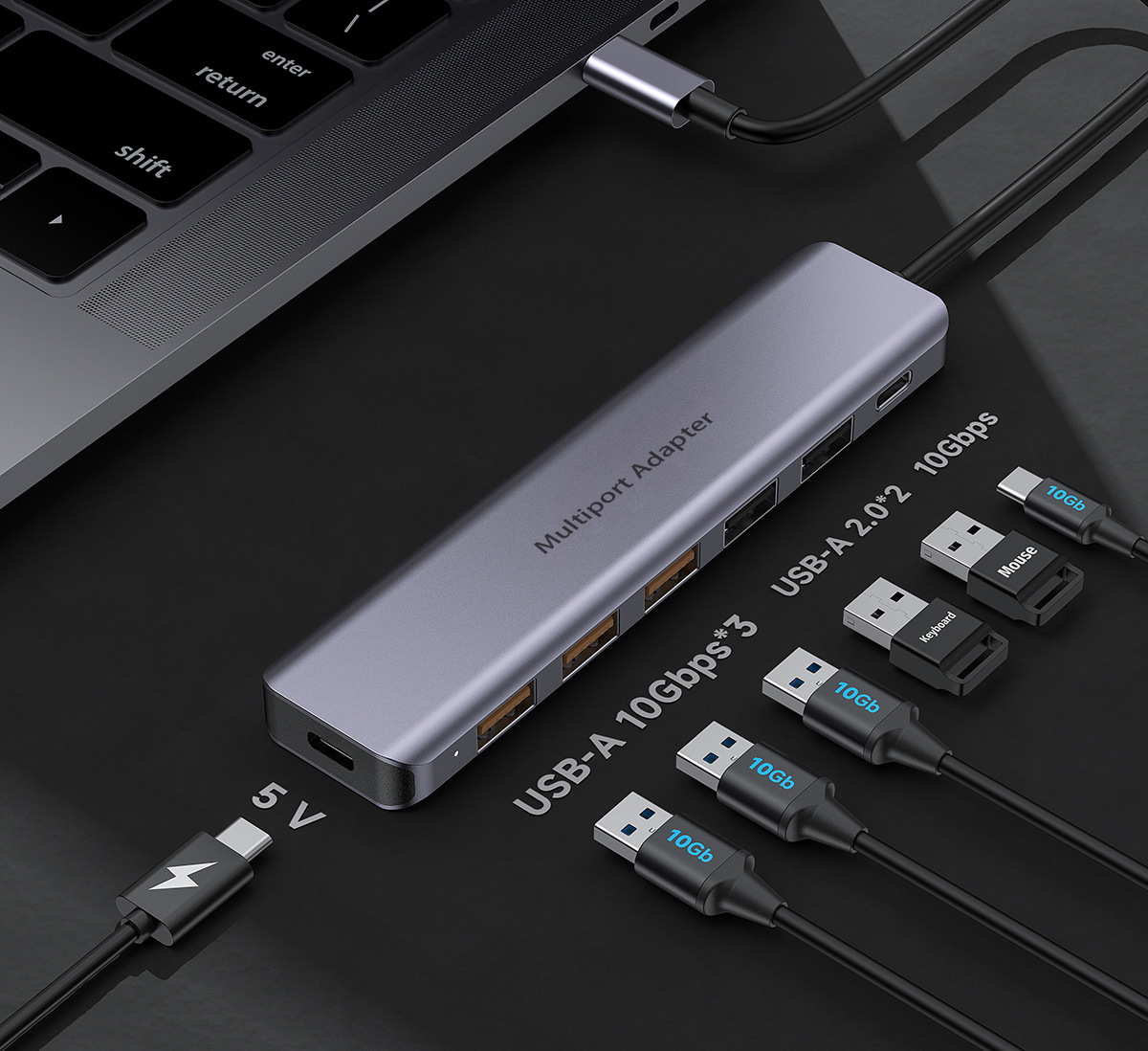 USB C 6-in-1 확장 도크 10G USB 3.2 허브 멀티포트 허브 분배기 해외 공장 직판스토어 가기