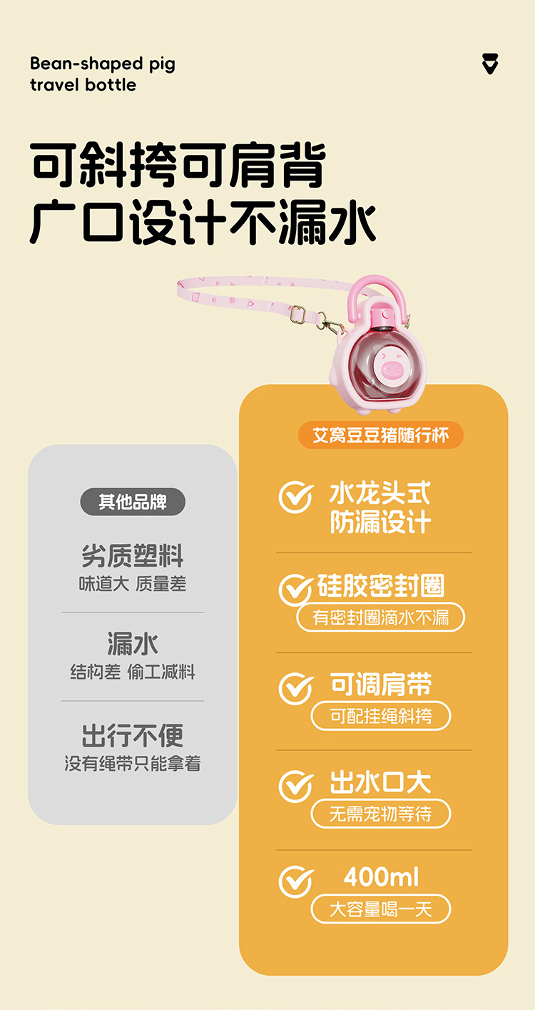 • 두두돼지 텀블러 - 핑크 (스트랩 포함)