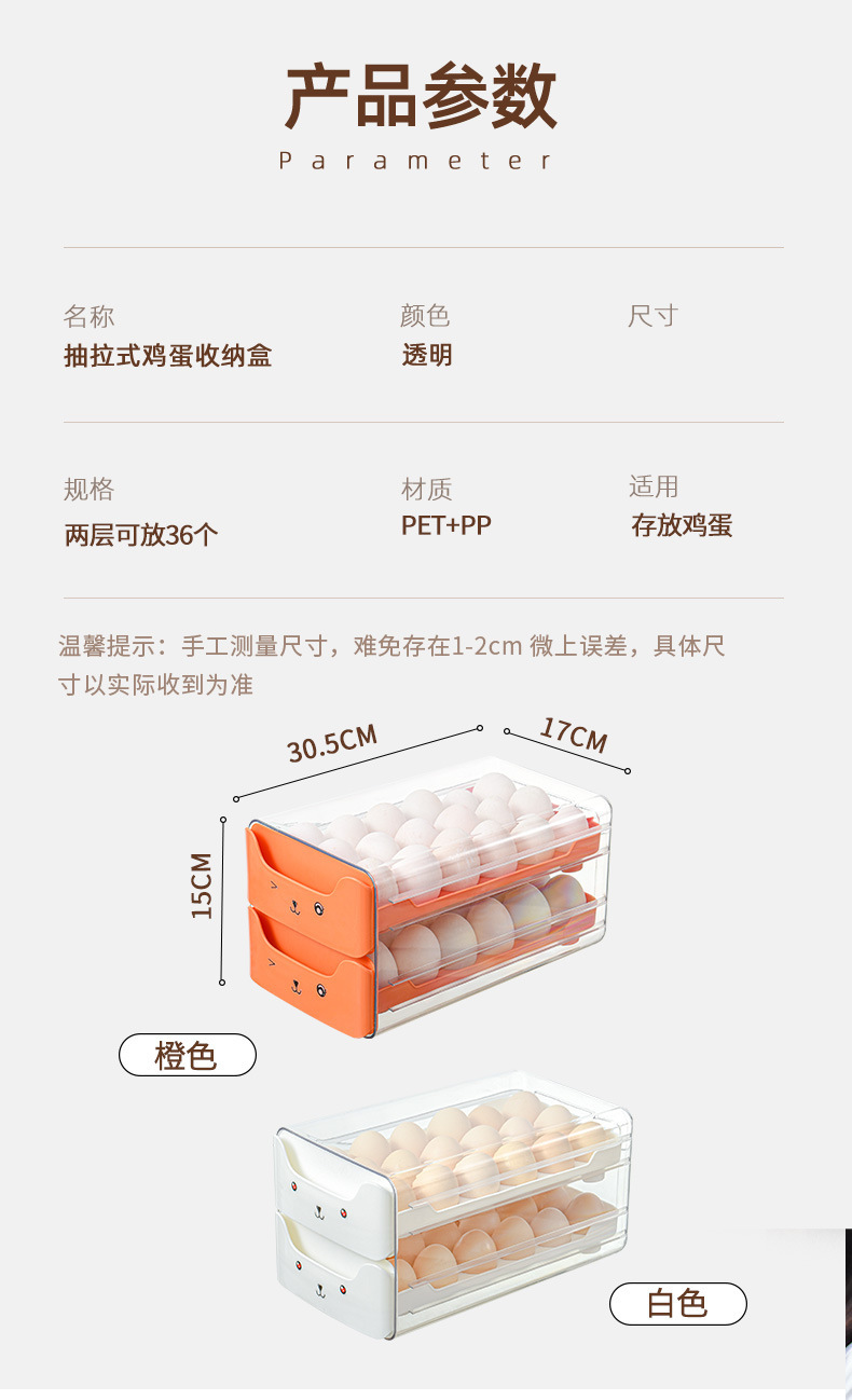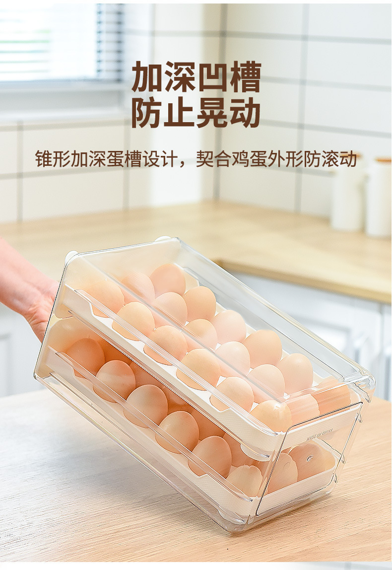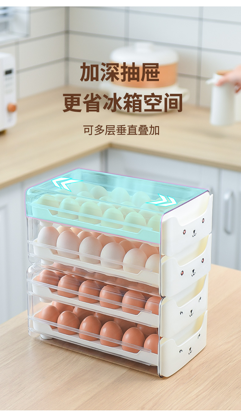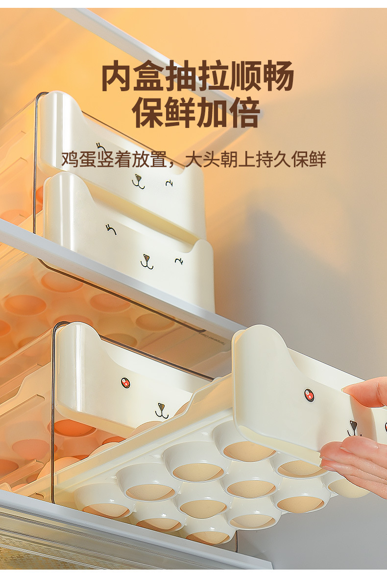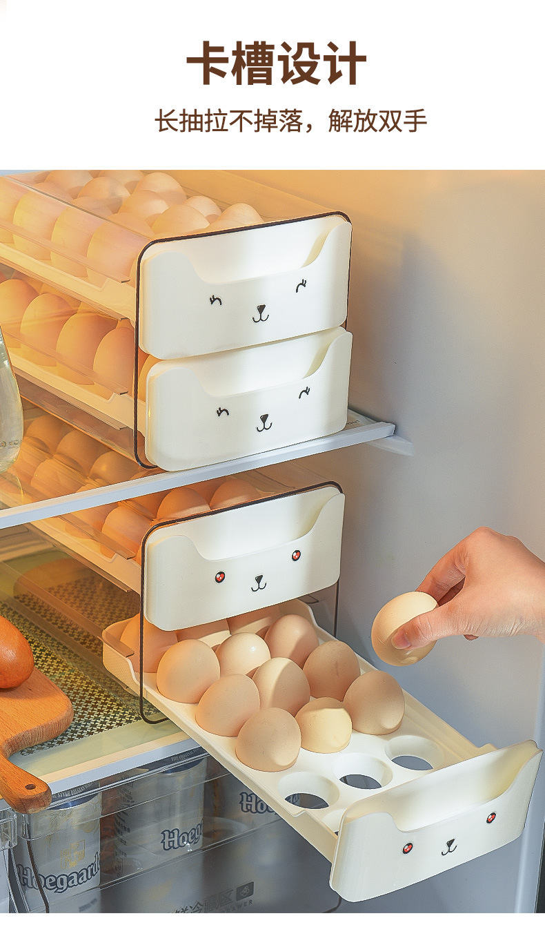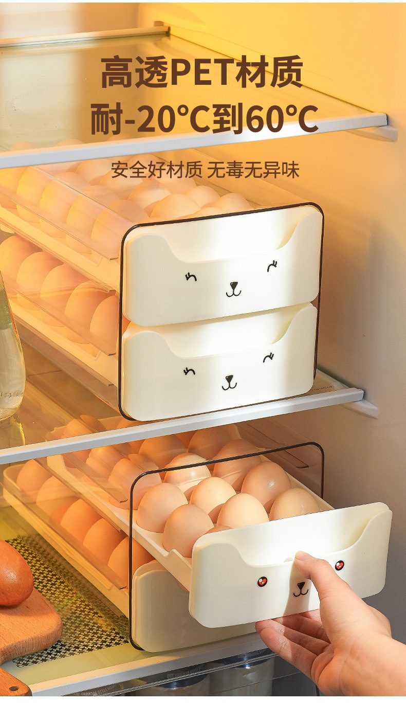 냉장고용 계란 보관함, 오리알을 담을 수 있는 식품등급 서랍형, 창의적이고 귀여운 이중층 주방 정리 및 보존