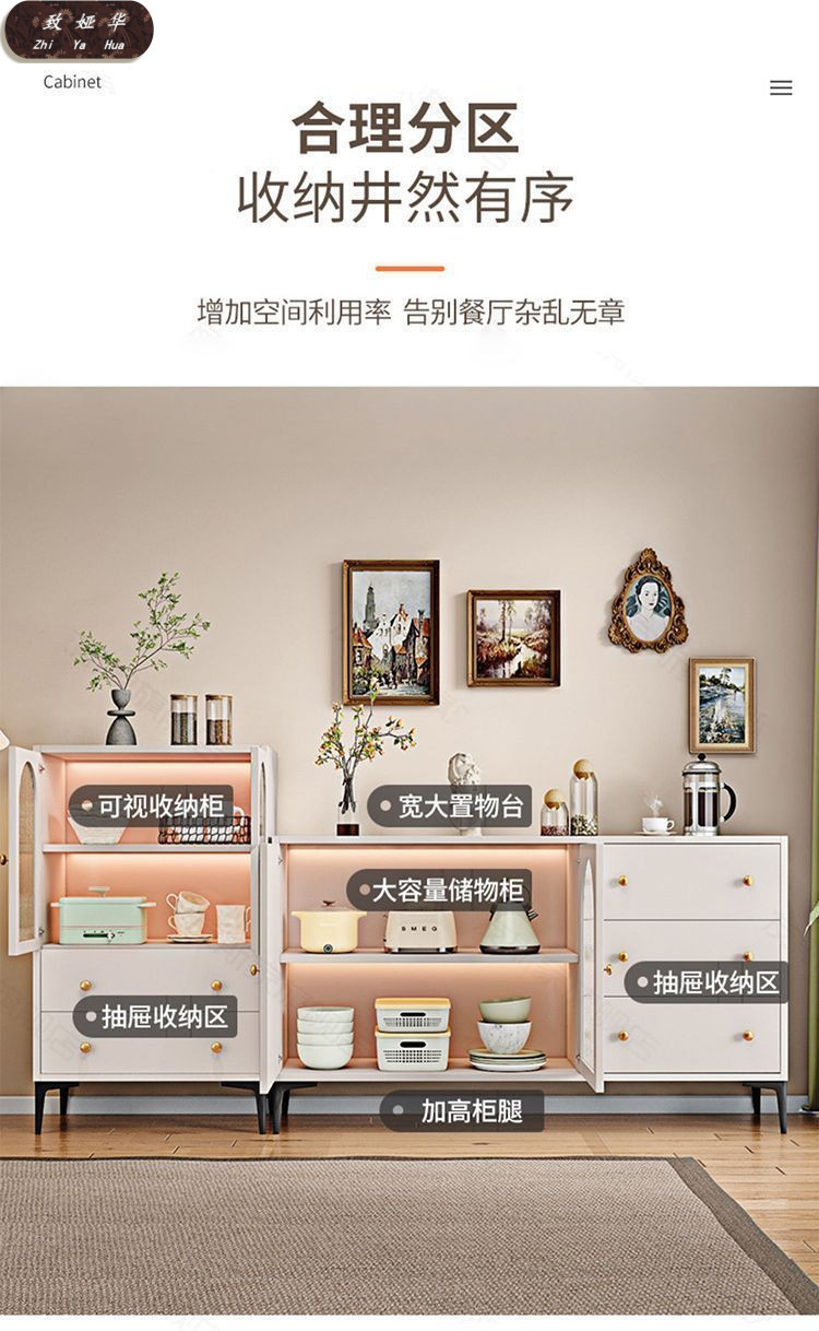 심플 모던 거실 주방 캐비닛 수납 캐비닛 크림 컬러 홈 티 캐비닛 프렌치 사이드보드 올인원 벽걸이형스토어 가기