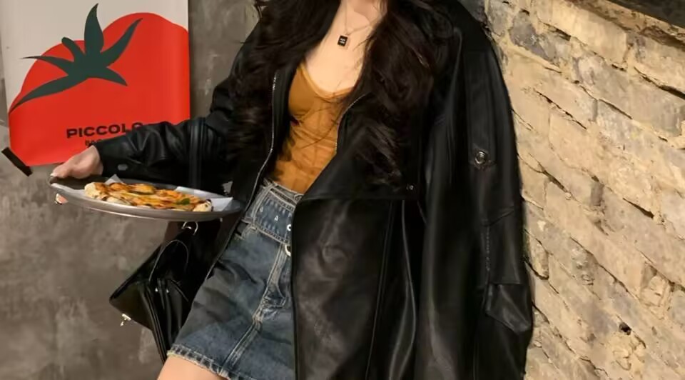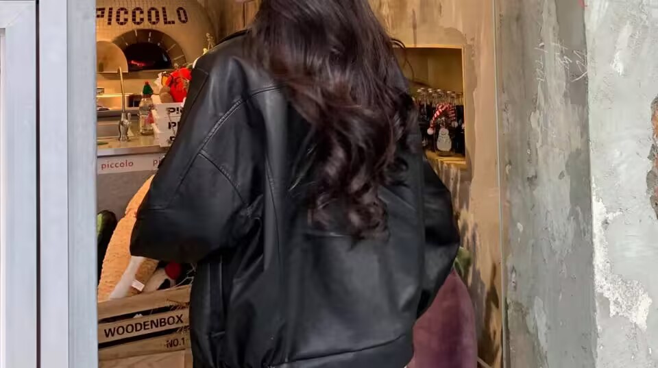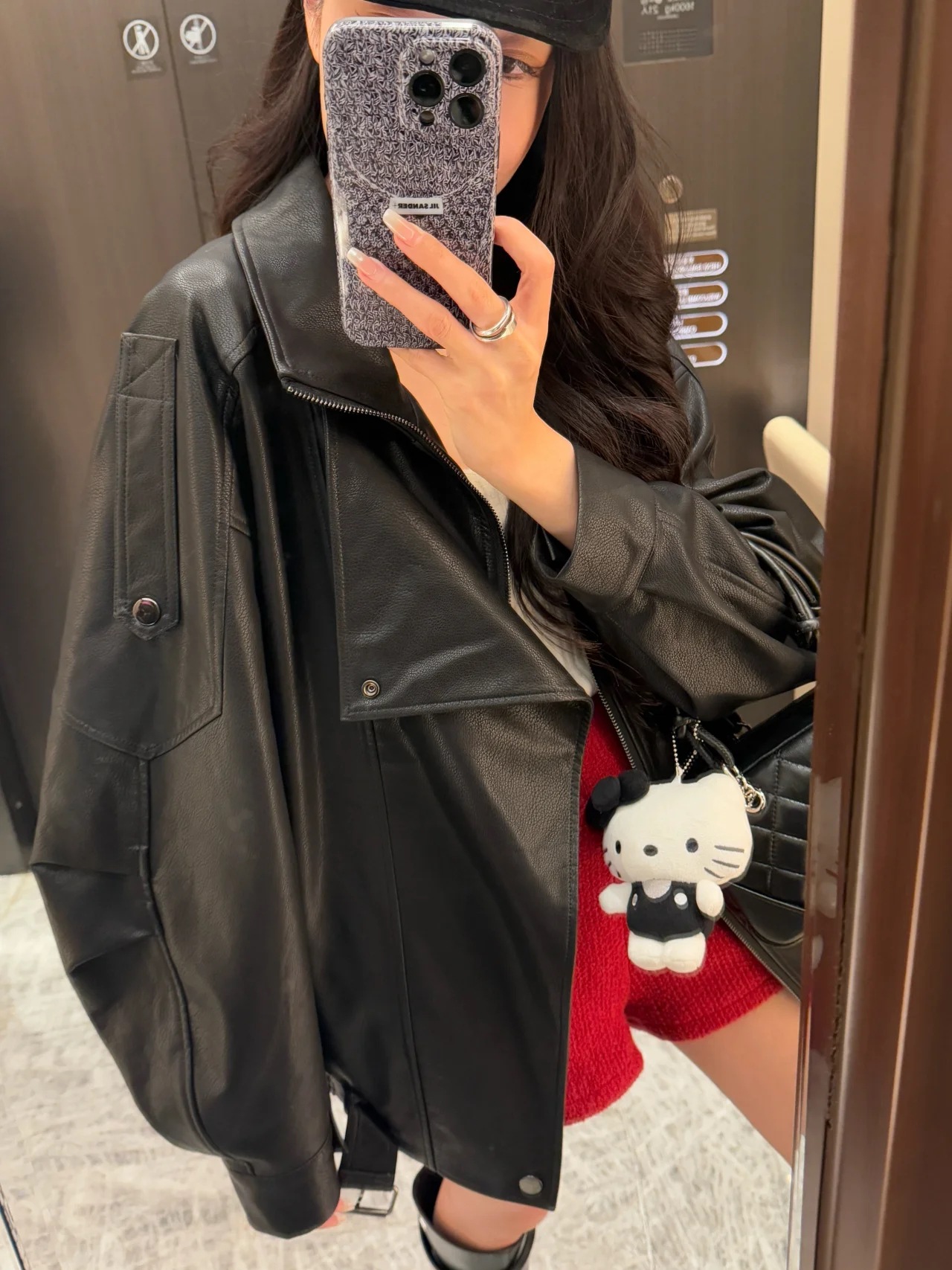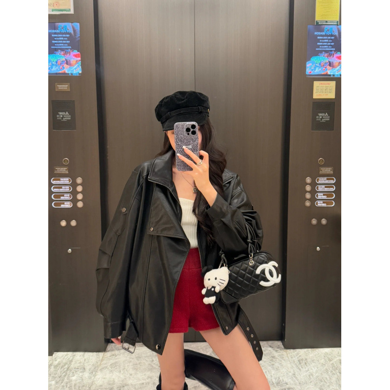 2025 새로운 스타일의 가죽 자켓 여성 봄, 가을 오토바이 자켓 복고풍 옷깃 벨트 하이 엔드 탑스토어 가기