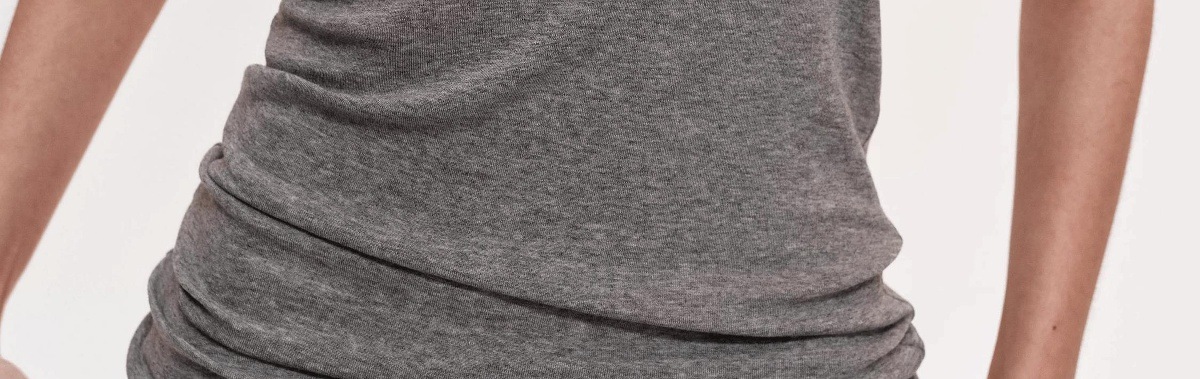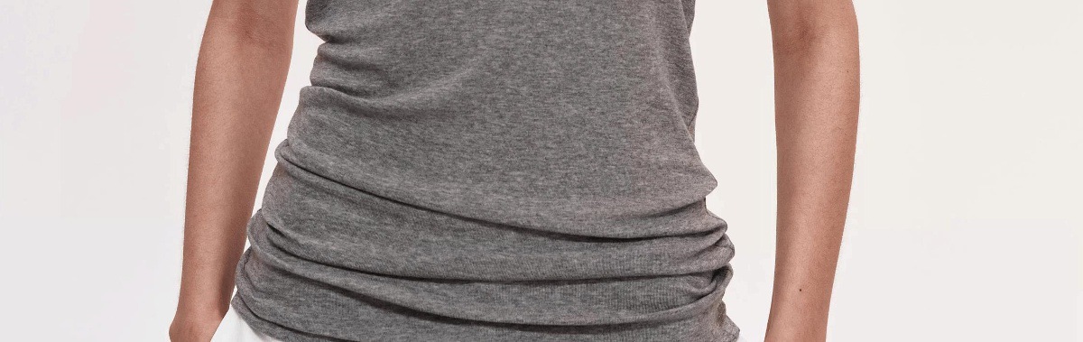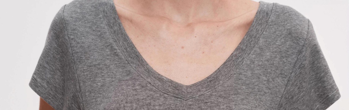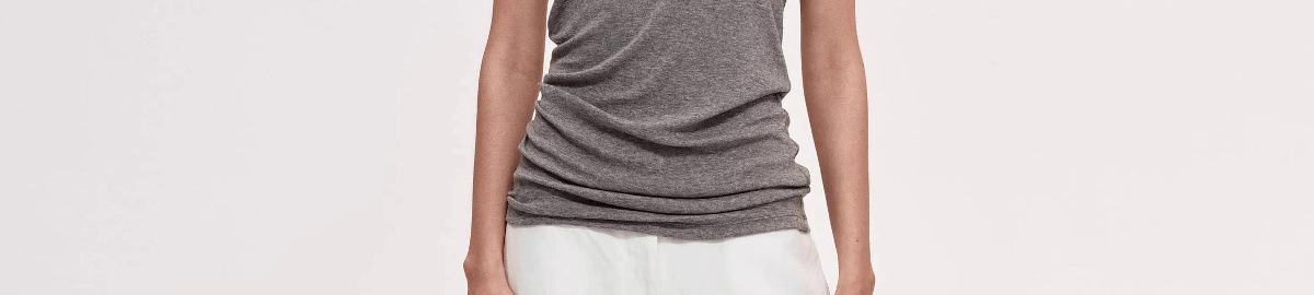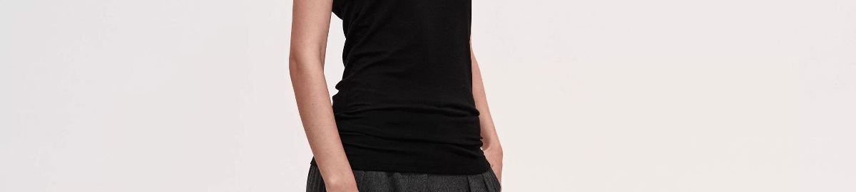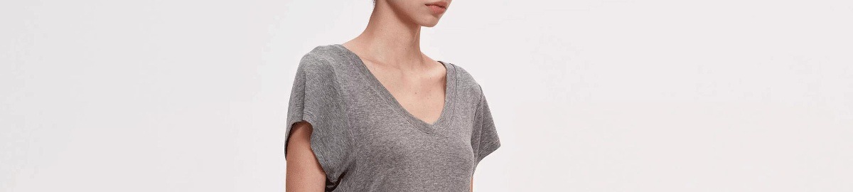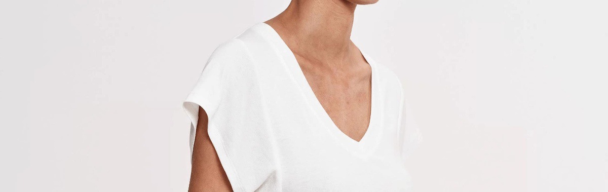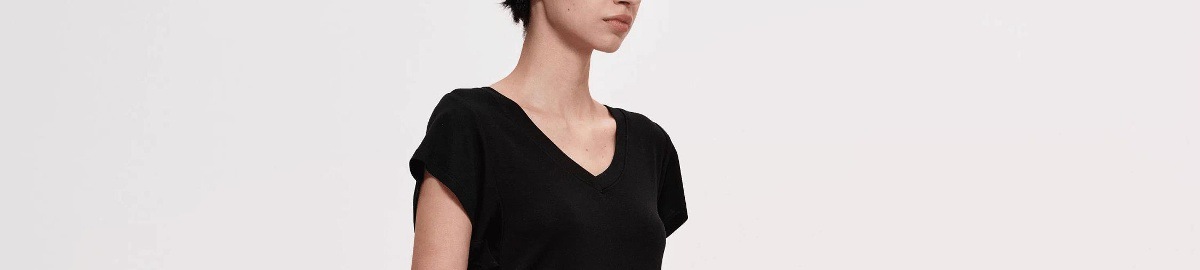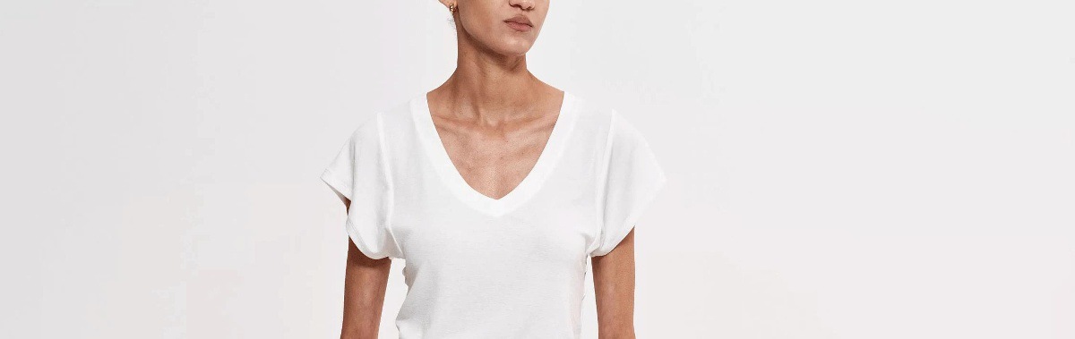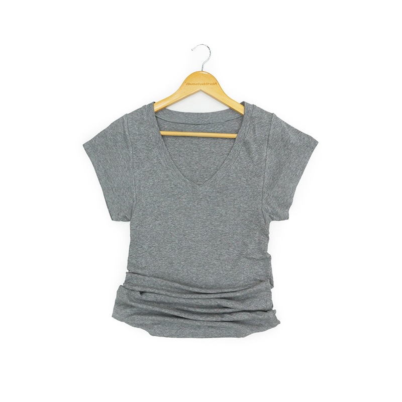 여름에 짧은 스커트를 입을 수 있는 스태킹 웨이스트 미드기장 브이넥 티셔츠, 슬림핏, 오른쪽 어깨, 시크한 작은 플라잉 슬리브 탑스토어 가기