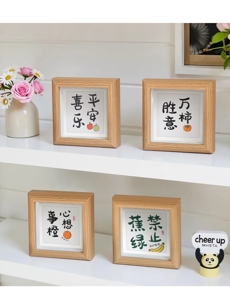 인스 만화 텍스트 소원 성취 중공 사진 액자 테이블 장식 나무 유리 사진 액자 탁상 장식 사진 소품스토어 가기
