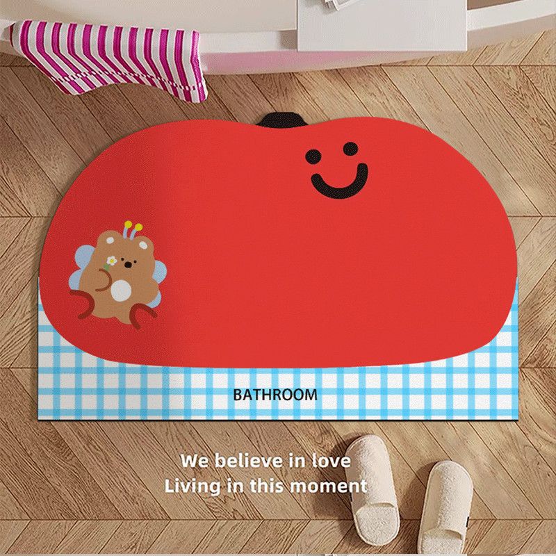 만화 크리 에이 티브 레드 애플 규조토 진흙 바닥 매트 욕실 욕실 미끄럼 방지 흡수성 쉬운 관리 속건성 먼지 방지 발 매트스토어 가기