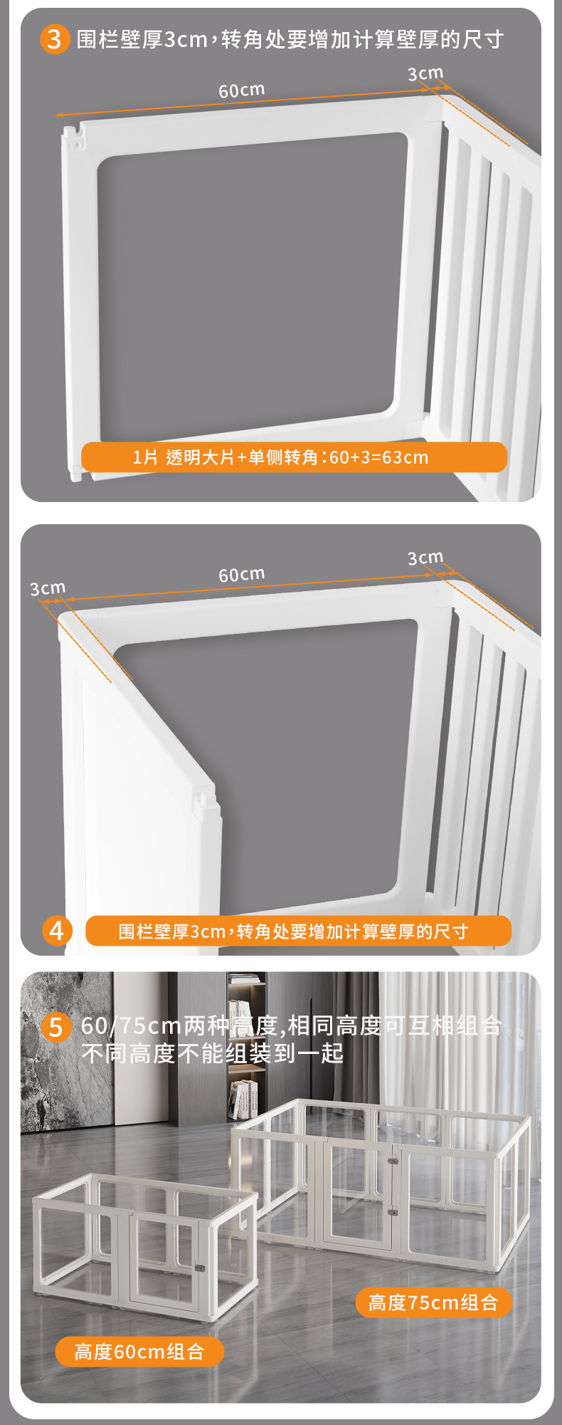 60/75cm 높이의 투명 아크릴 애완동물 울타리 무료 DIY [단품/조합/버클]스토어 가기