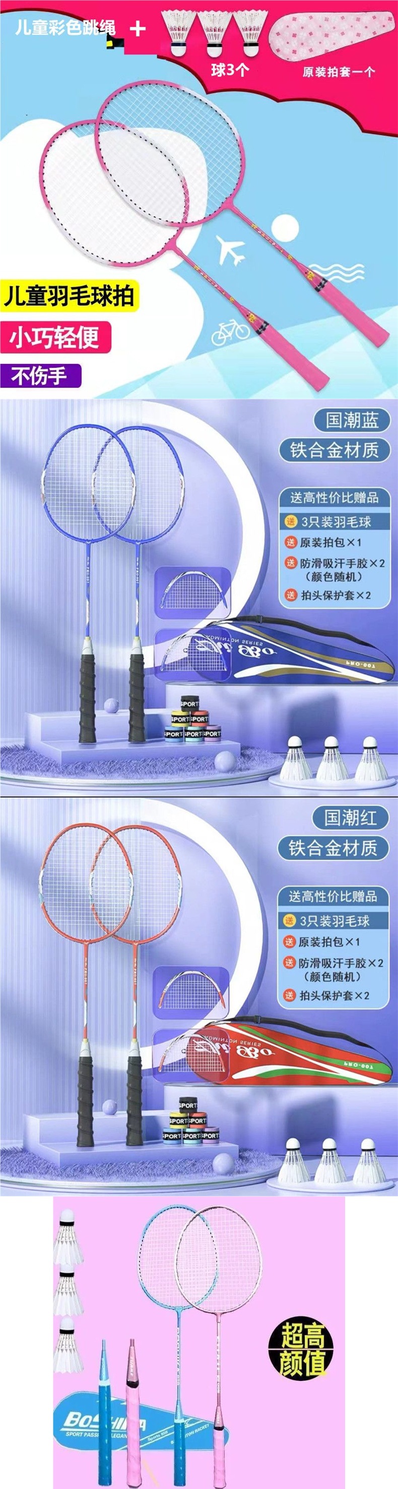 성인용 배드민턴 라켓, 내구성이 뛰어나고 탄력성이 뛰어난 학생, 어린이, 부모-자식 커플을 위한 정품 더블 라켓