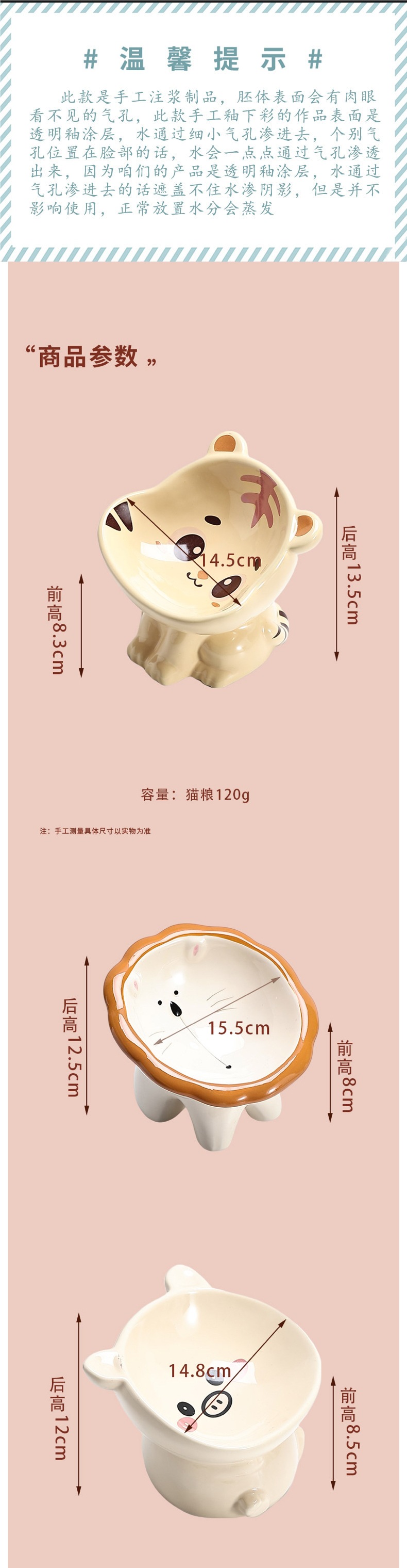 고양이 그릇, 귀여운 동물 시리즈, 세라믹 애완동물 식수 그릇, 발이 높고 목 보호대가 있는 고양이 그릇, 검은 턱 방지 고양이 사료 그릇, 개 그릇
