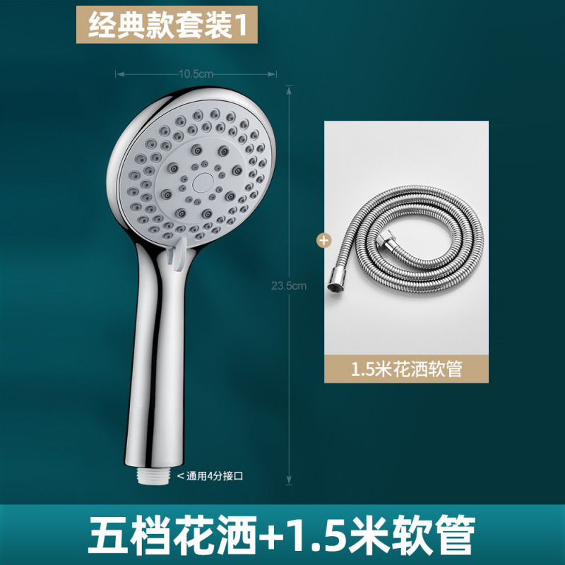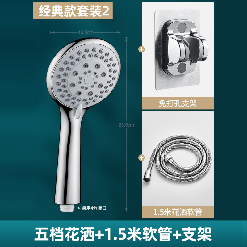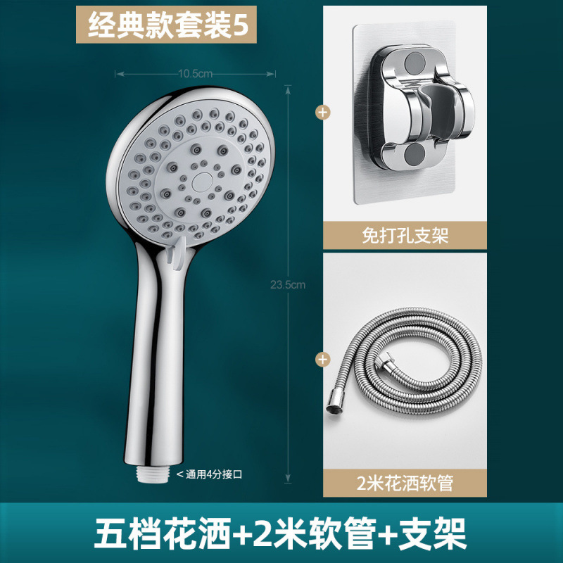 • 5단 슈퍼차저 샤워기 + 1.5m 스테인레스 스틸 파이프 + 브래킷
