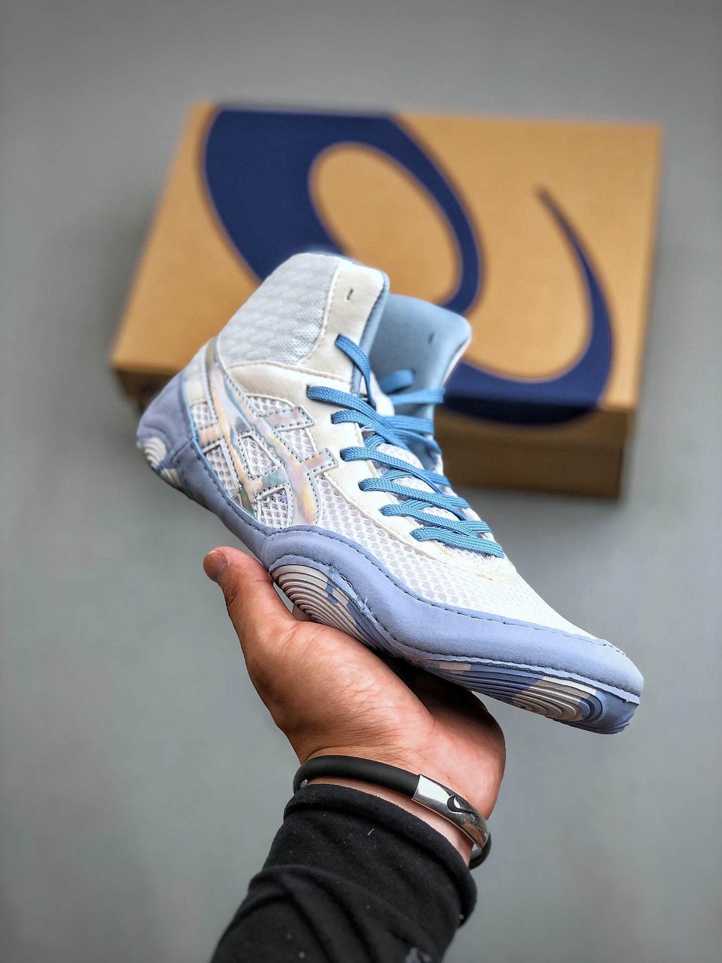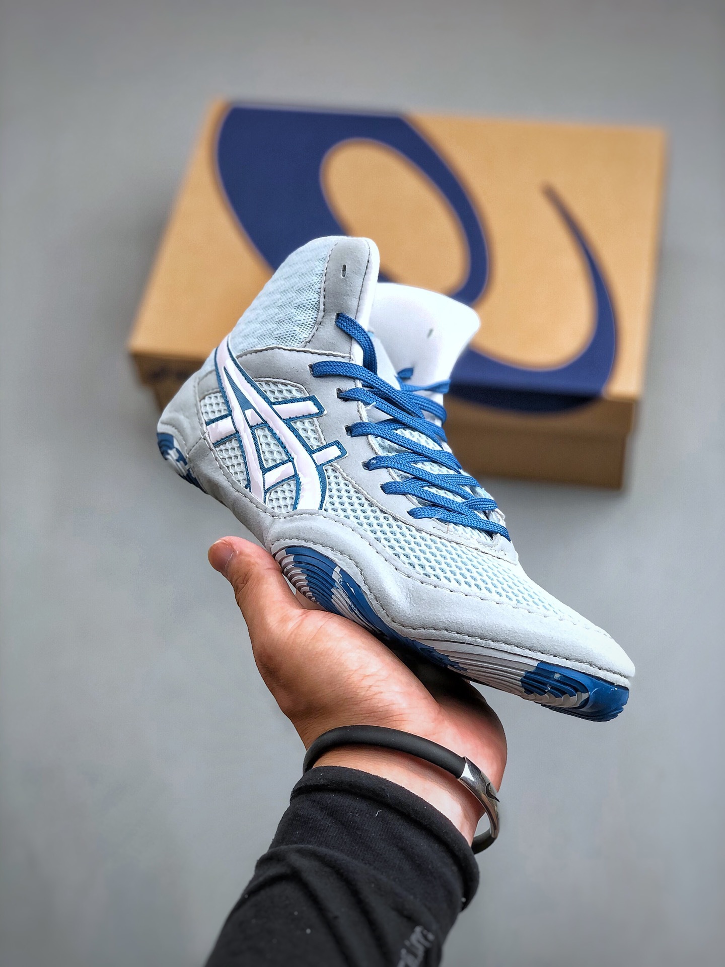 • 진한 흰색과 파란색 레슬링 트레이닝 슈즈