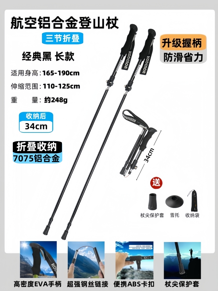 • 7075 알루미늄 합금 접이식 모델 - 클래식 블랙(2개 팩) 수납 공간이 34cm에 불과_?