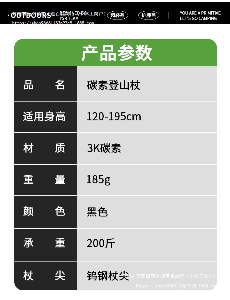 • 단일 팩(순수 탄소 섬유 3개 섹션 + 텅스텐 강철 지팡이 팁) 스타 블랙(175g만) _?