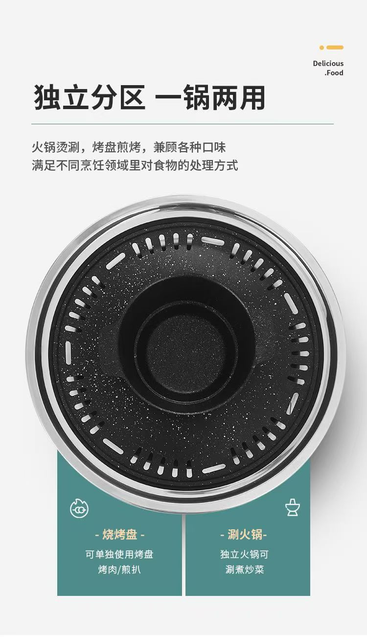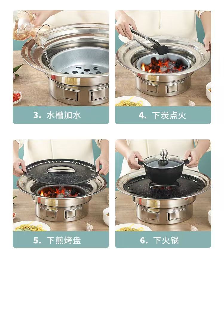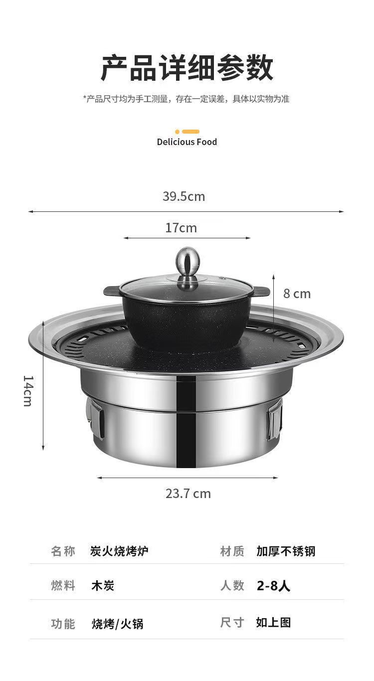 두꺼운 전골 및 바베큐 플레이트, 가정용 튀김 및 바베큐 전골 일체형 무연 바베큐 다기능 야외 숯불 그릴