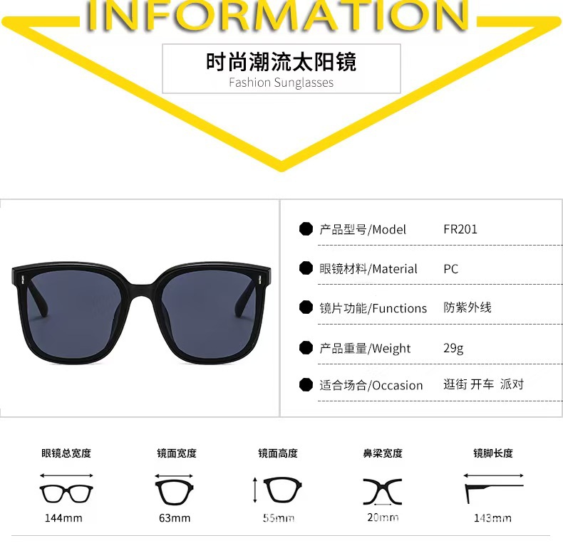여성용 신형 선글라스, 한국형 세로형 미딘 인터넷 연예인 같은 스타일의 큰 얼굴 선글라스, 운전용 안경, 패셔너블한 대형 프레임 선글라스
