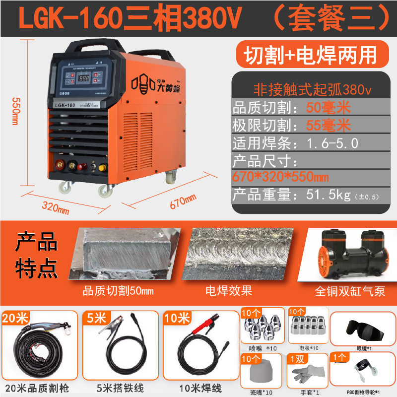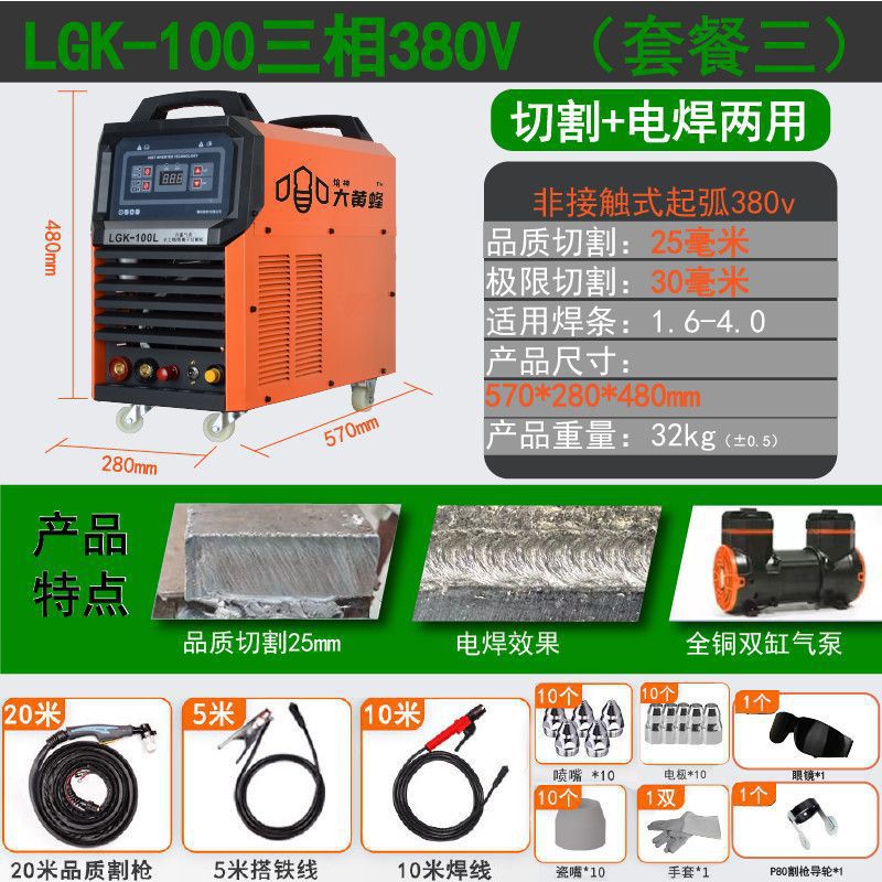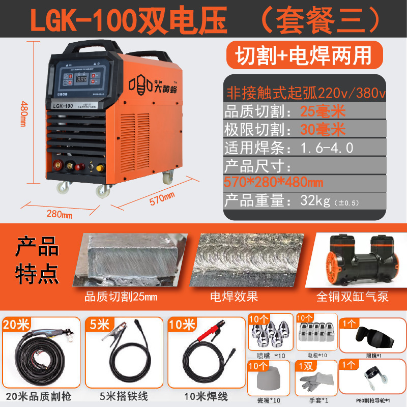 Bumblebee LGK60 100 이중 전압 내장 공기 펌프 플라즈마 절단기 전기 용접 이중 목적 올인원 기계 새로운 스타일