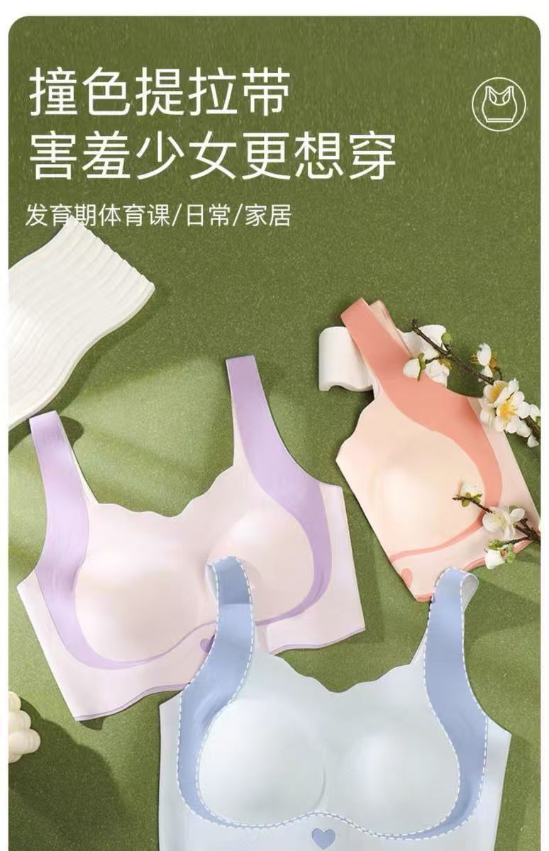 중, 고등학생을 위한 청소년 소녀의 심리스 속옷, 고정형 원컵 브라, 편안하고 통기성이 뛰어난 스포츠 브라스토어 가기