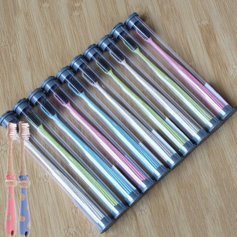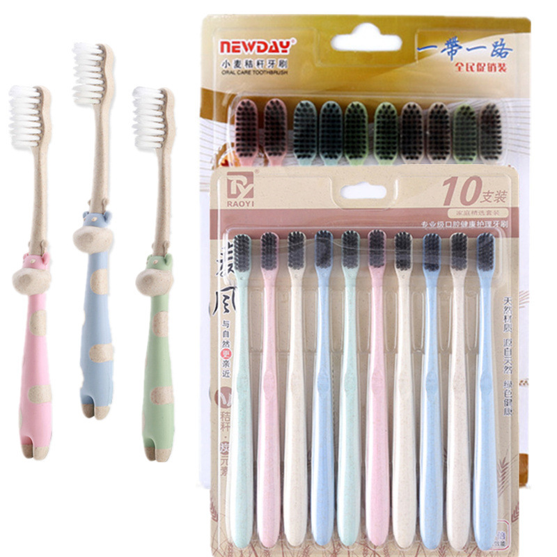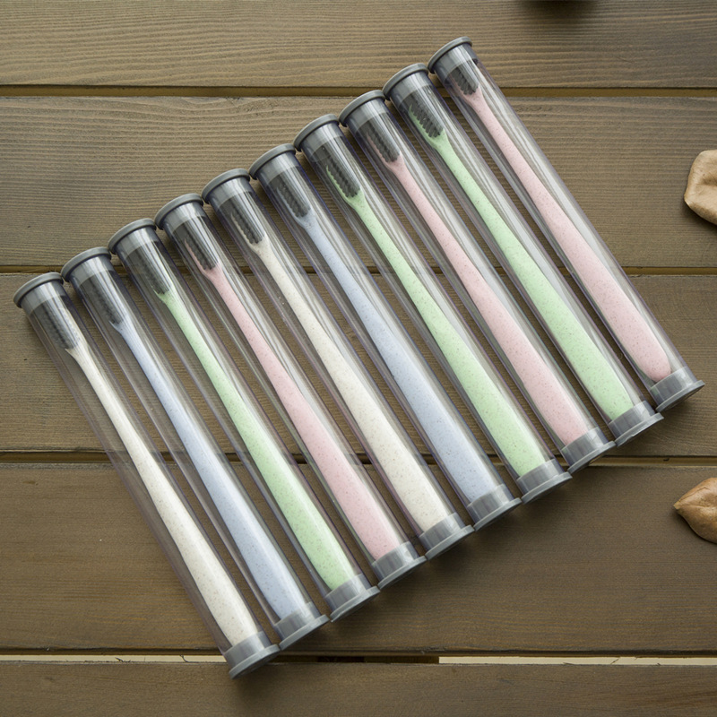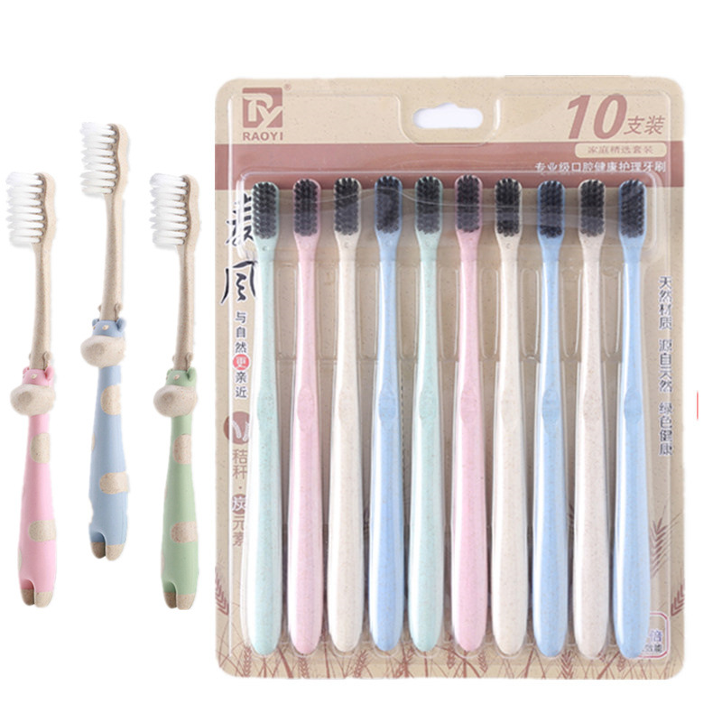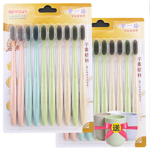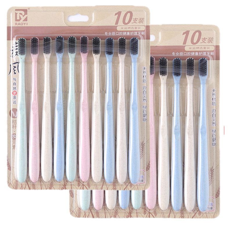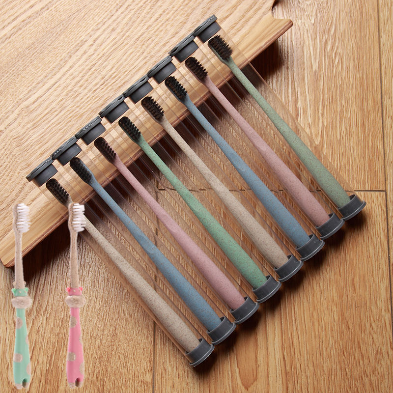 구강 세척제 컵 밀짚 가정용 칫솔 부드러운 강모 환경 친화적인 대나무 숯 성인 10개