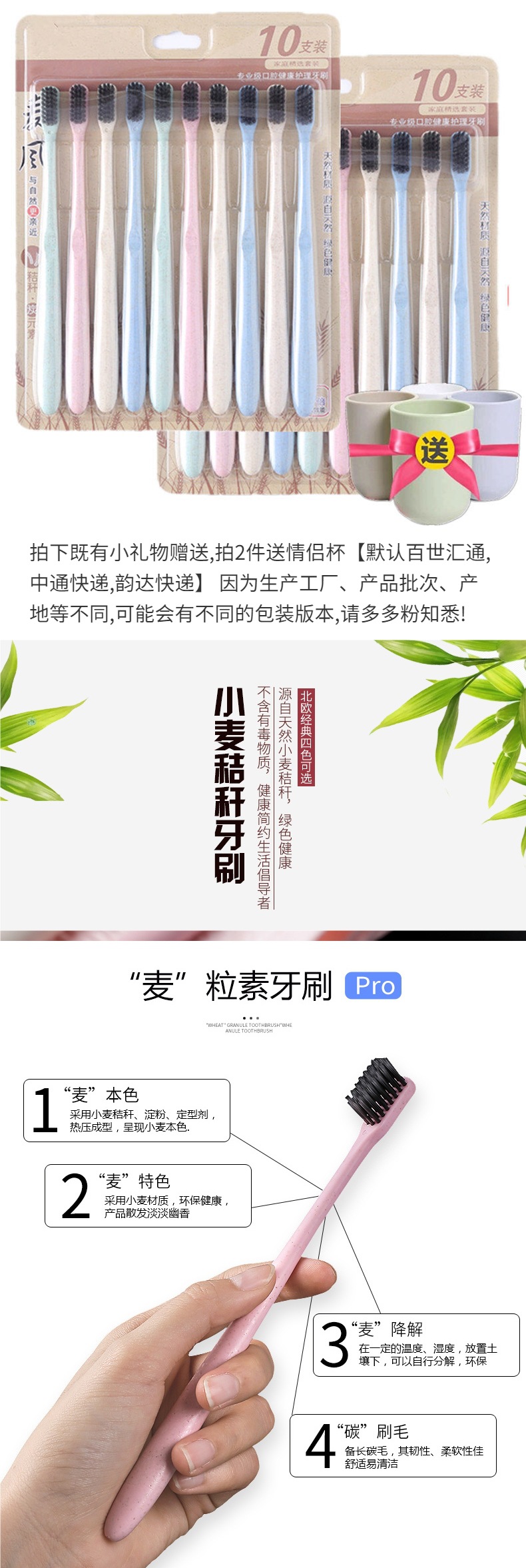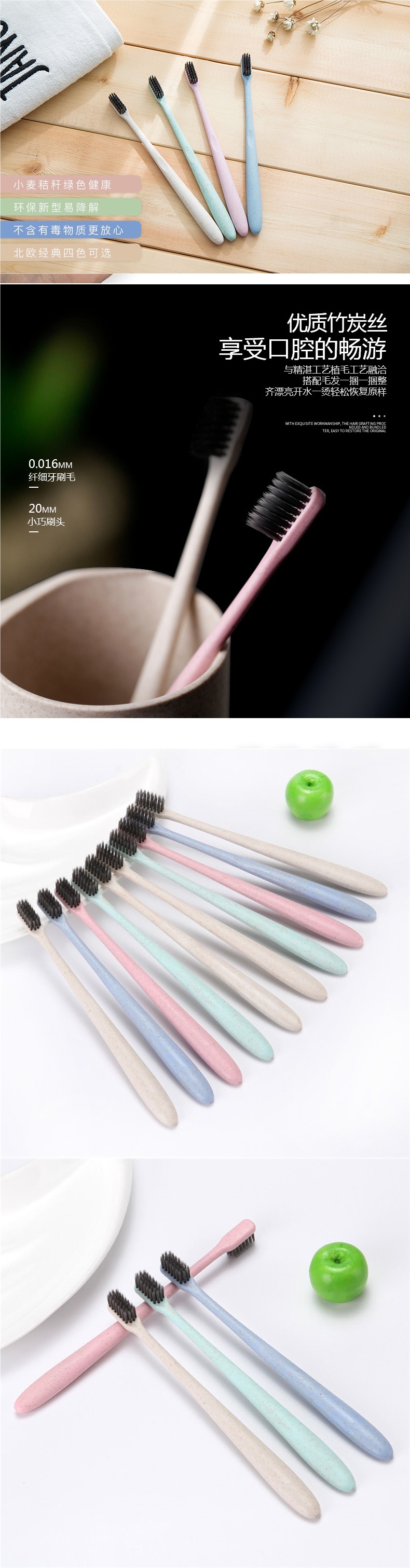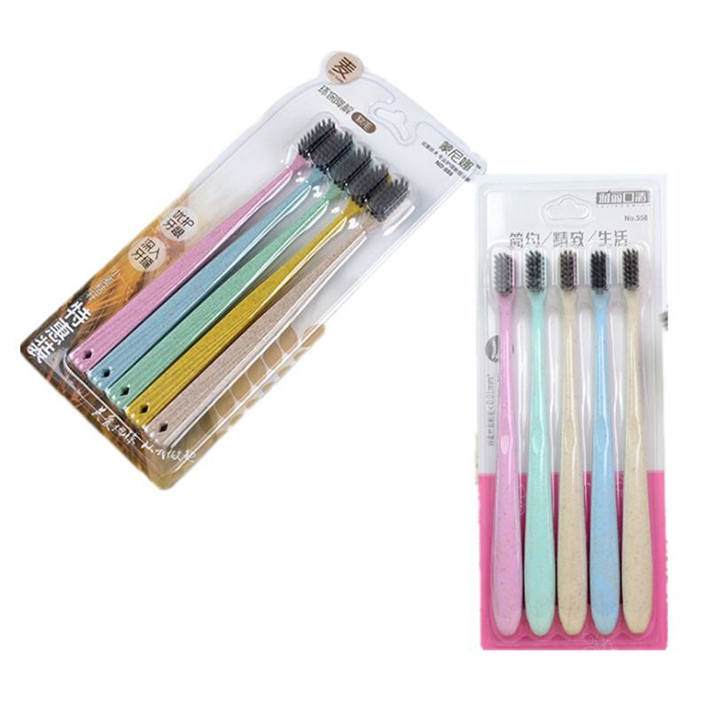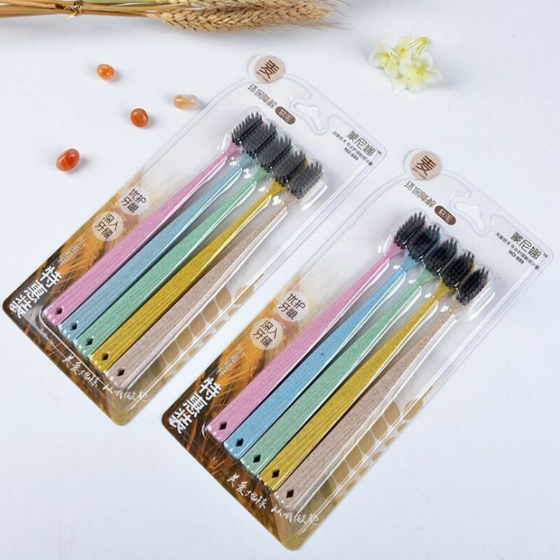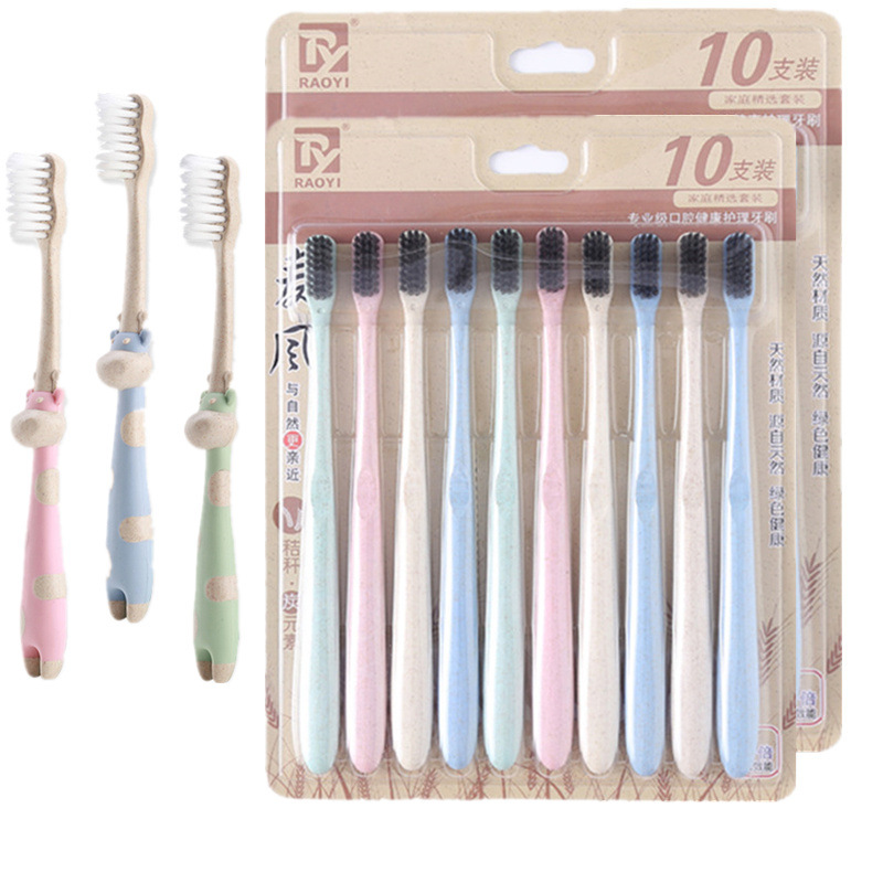 구강 세척제 컵 밀짚 가정용 칫솔 부드러운 강모 환경 친화적인 대나무 숯 성인 10개