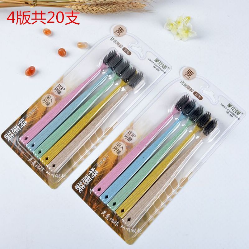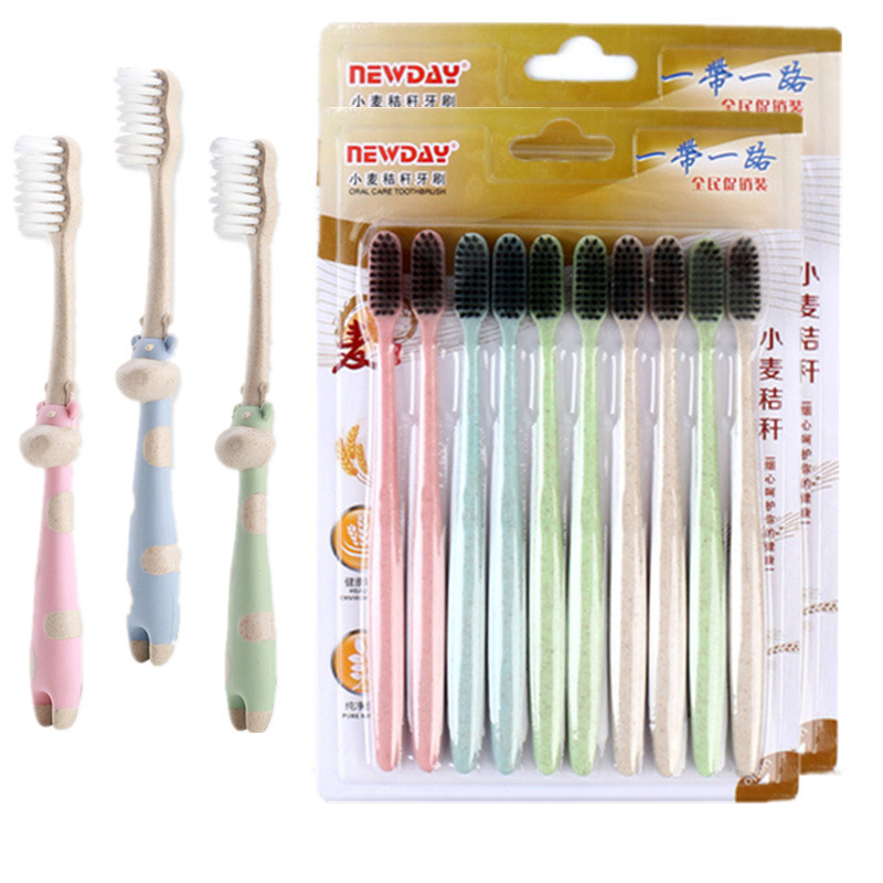 구강 세척제 컵 밀짚 가정용 칫솔 부드러운 강모 환경 친화적인 대나무 숯 성인 10개스토어 가기