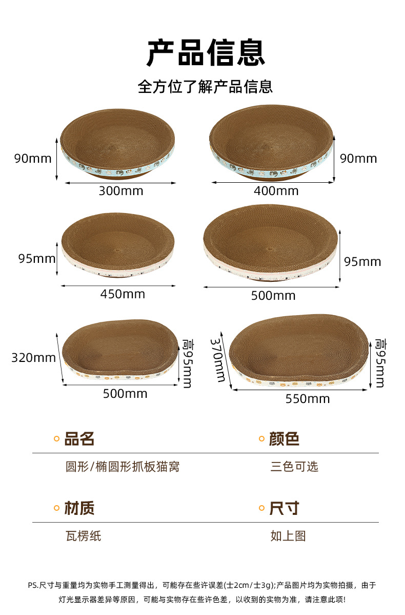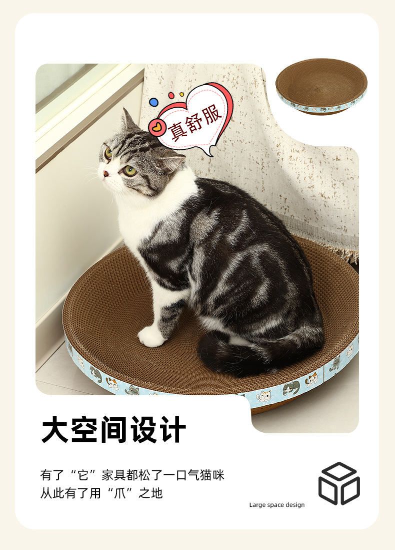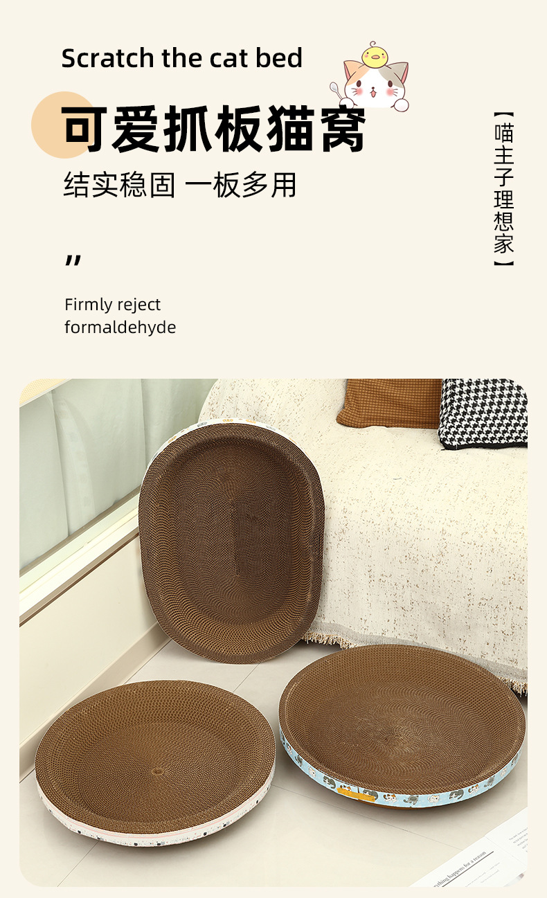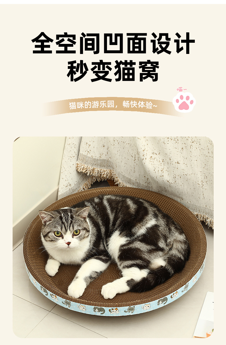 타원형 두꺼운 골판지 고양이 둥지, 애완용 고양이 긁힘 방지, 물림 방지 및 발톱 연삭 고양이 스크래치 보드 일체형 수면 매트스토어 가기