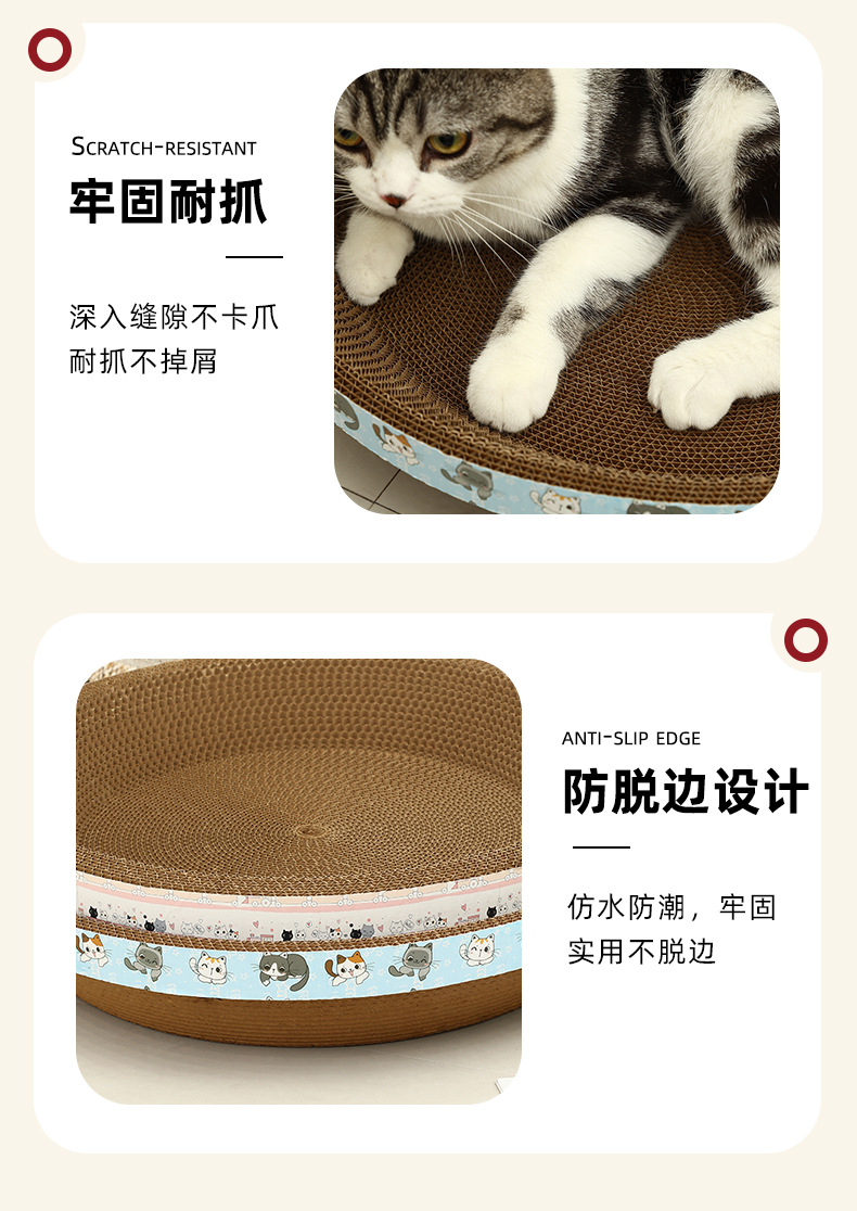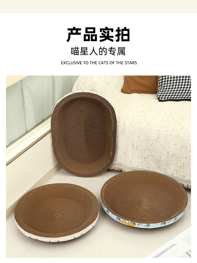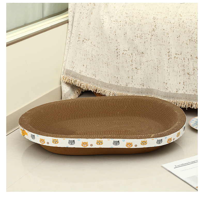 타원형 두꺼운 골판지 고양이 둥지, 애완용 고양이 긁힘 방지, 물림 방지 및 발톱 연삭 고양이 스크래치 보드 일체형 수면 매트
